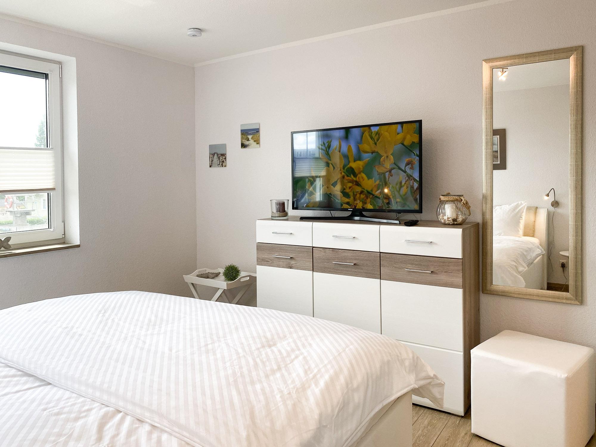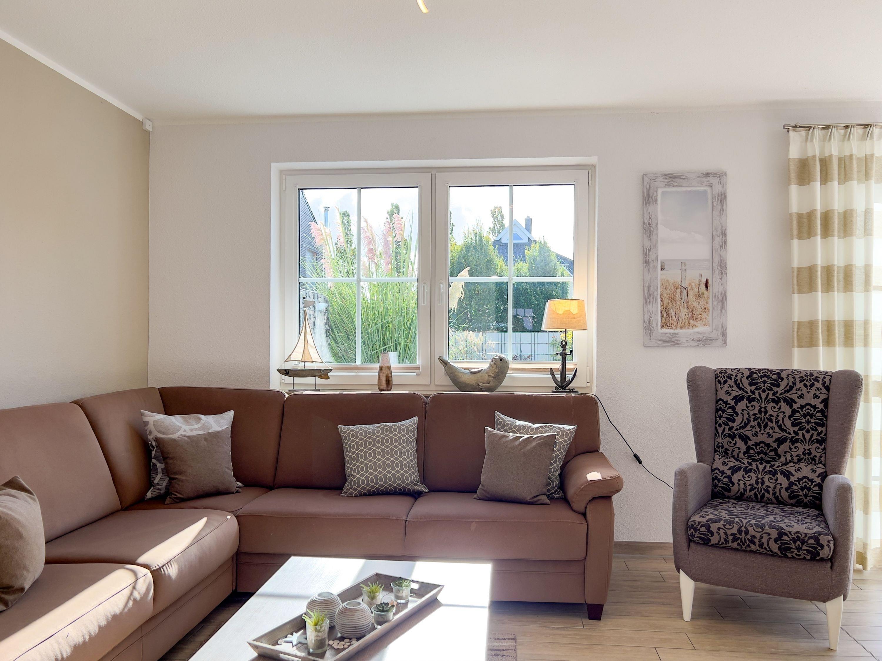 Sonnige Südterrasse mit Garten, Spielfläche für Kinder und eigenem Strandkorb