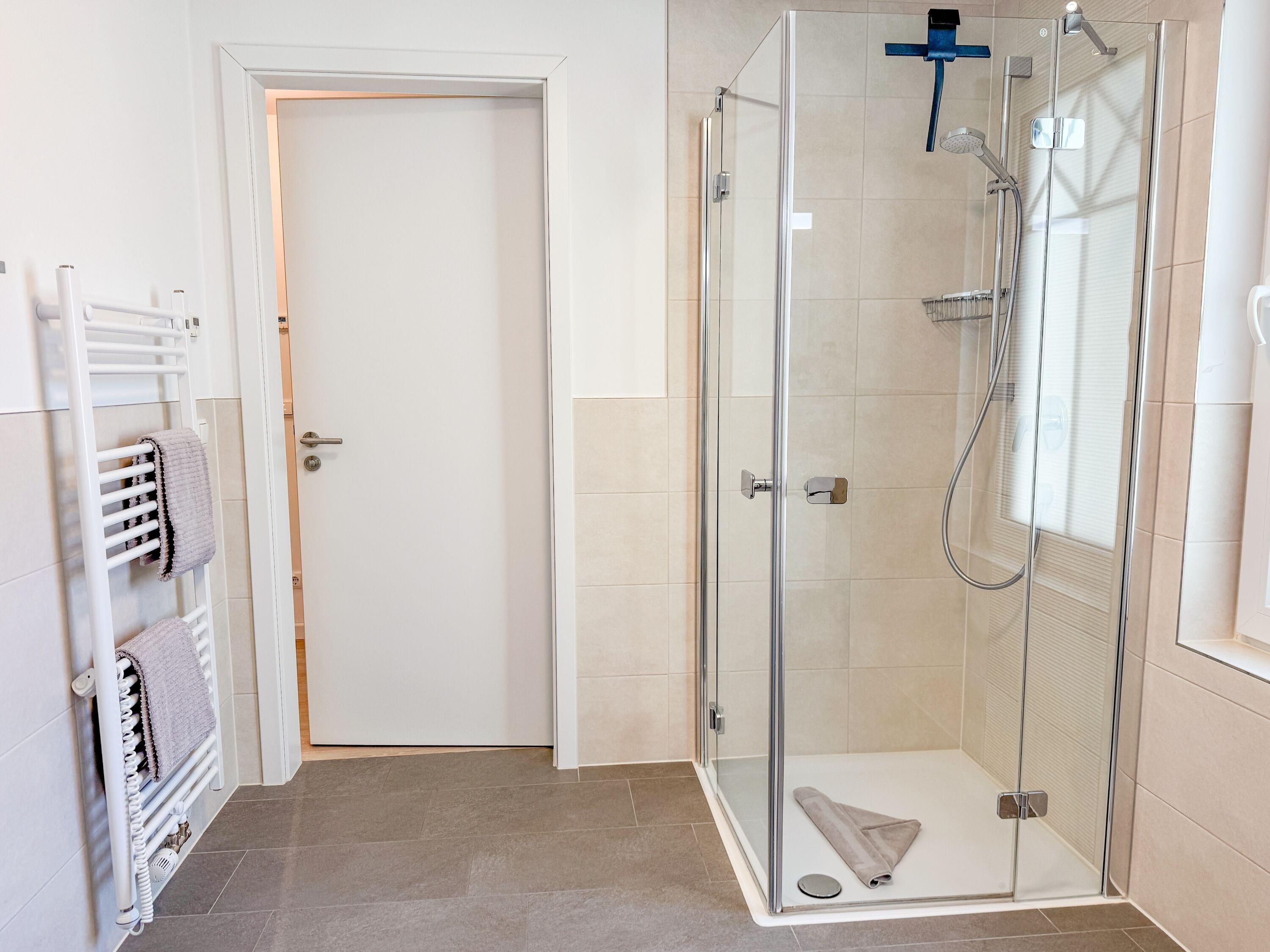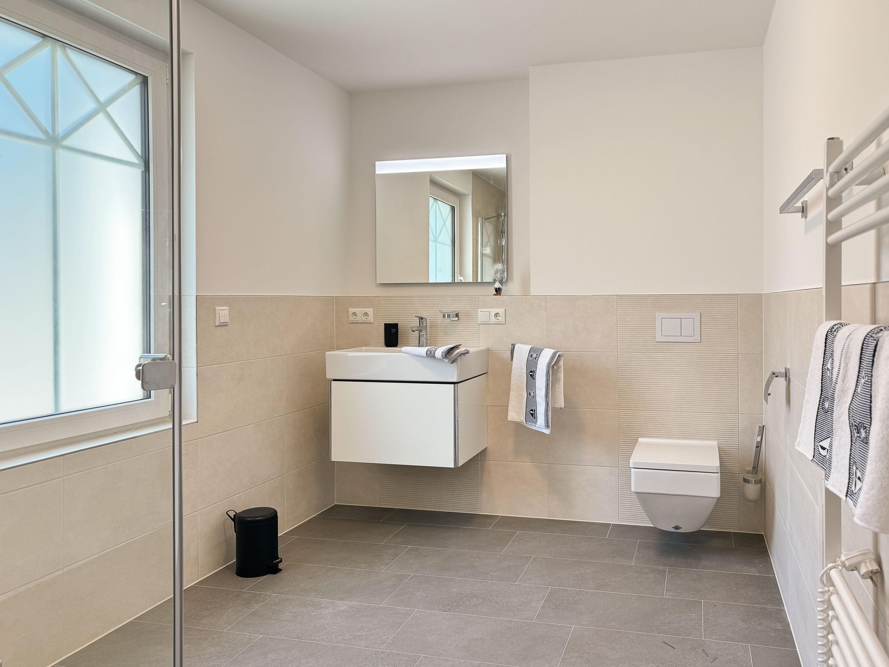 Das moderne Bad und das angenehm ruhige Schlafzimmer runden das Wohlfühlerlebnis ab und schenken erholsame Nächte.