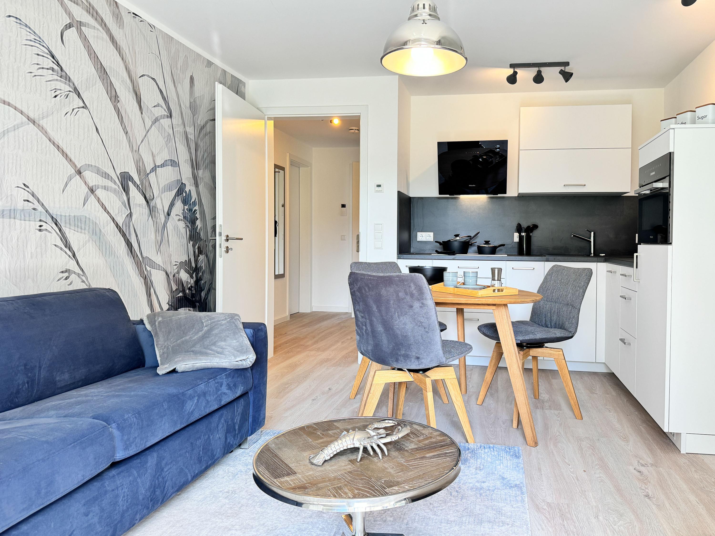 Auf 50 m² erwartet Sie ein stilvolles Ambiente, das nordisches Design mit warmen Wohlfühlmomenten vereint. Ein perfekter Ort, um die Ostsee zu zweit zu genießen.
