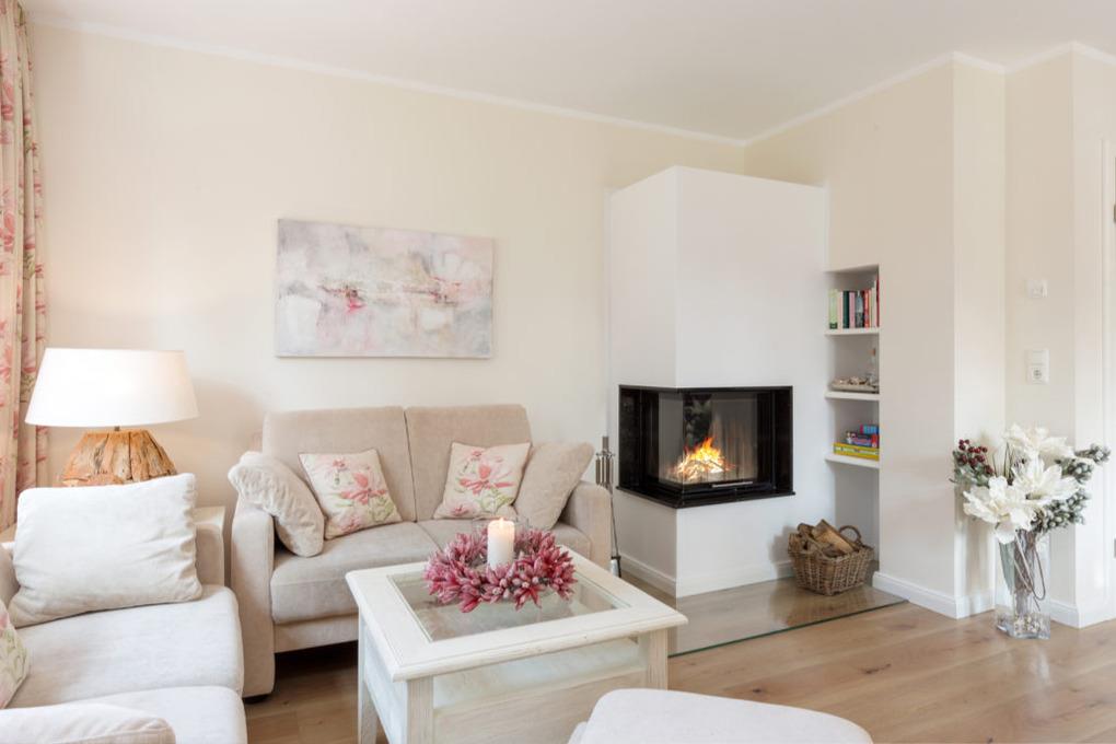Gemütlicher Wohnbereich : Mit Kamin und modernen Sofas für entspannte Abende