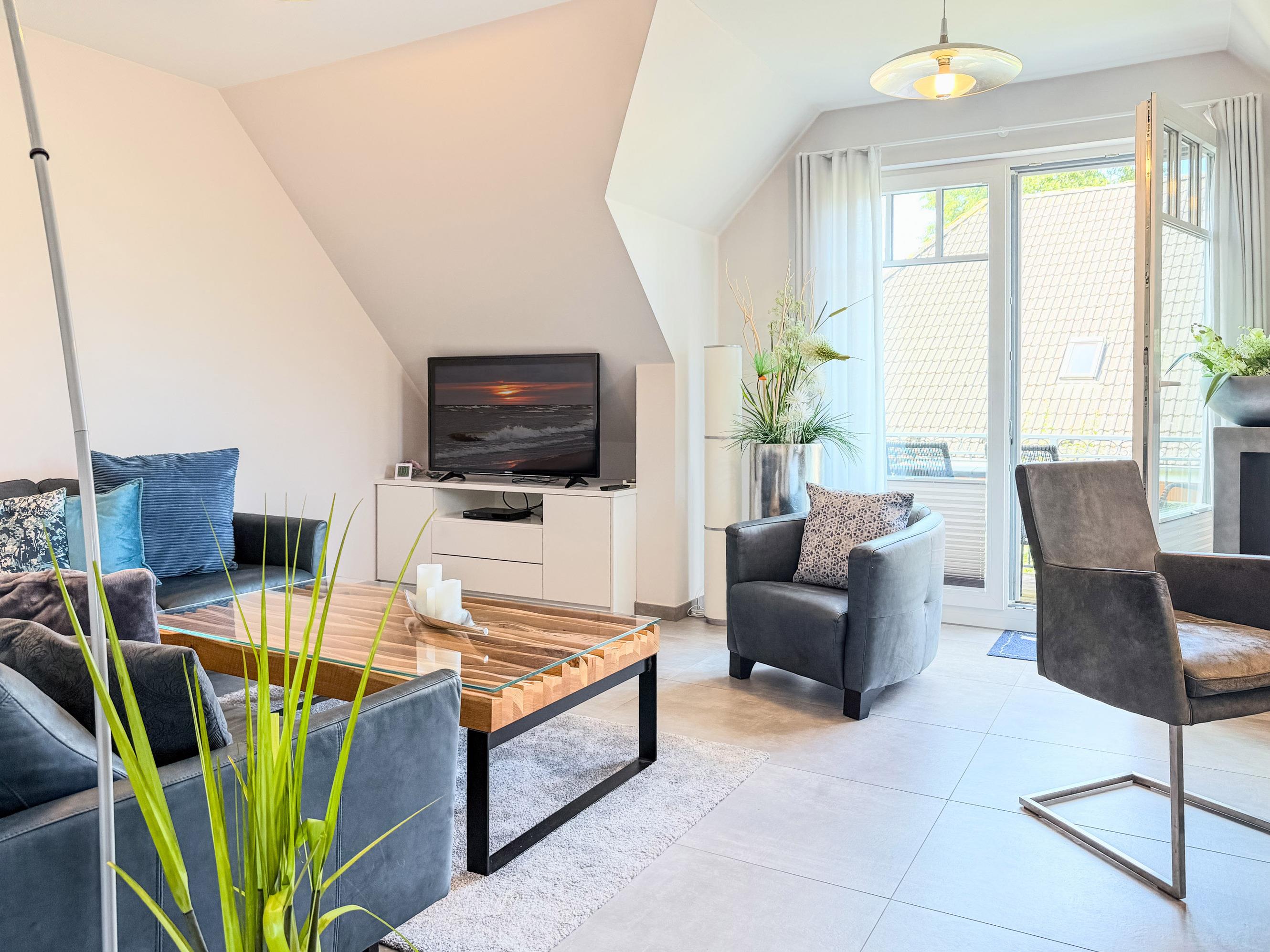 Die Ferienwohnung Meerle 5 verbindet modernes Design mit wohltuender Behaglichkeit. Helle Räume, natürliche Materialien und liebevolle Details schaffen ein Ambiente, das Ruhe und Wohlgefühl ausstrahlt. Beginnen Sie den Tag mit einem Kaffee auf dem Balkon, verbringen Sie sonnige Stunden am Strand und lassen Sie den Abend entspannt im gemütlichen Wohnbereich ausklingen – hier spüren Sie das Ostseegefühl in jedem Moment.