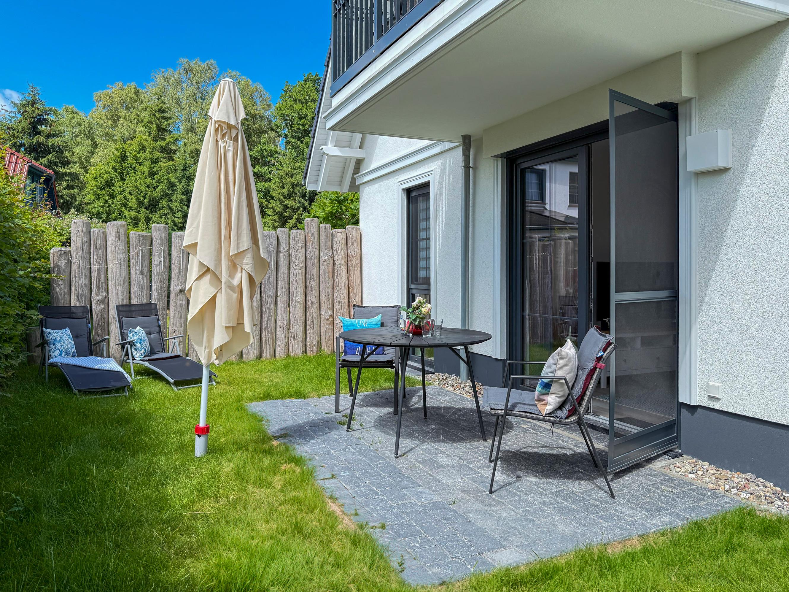 Südwest-Terrasse mit Gartenmöbeln für entspannte Stunden