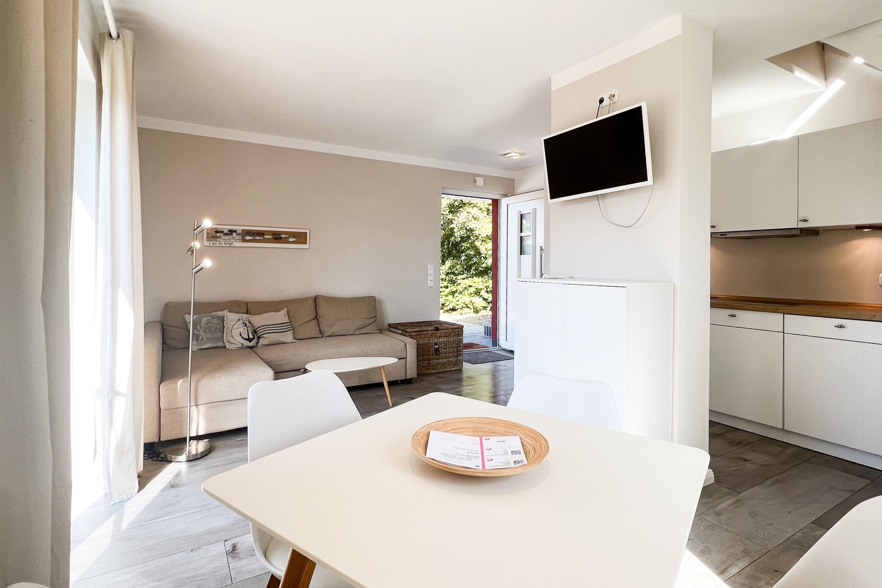 Diese exquisit renovierte Maisonette-Wohnung bietet auf 50 m² Platz für bis zu vier Personen und verbindet modernen Komfort mit traditionellem Reetdach-Charme. Ideal für Paare oder kleine Familien, die einen unvergesslichen Ostseeurlaub erleben möchten.