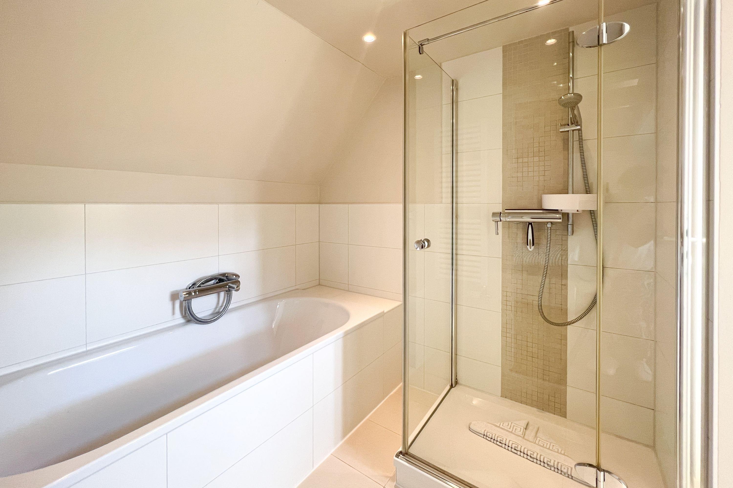 Luxuriöses Badezimmer mit Dusche und Badewanne