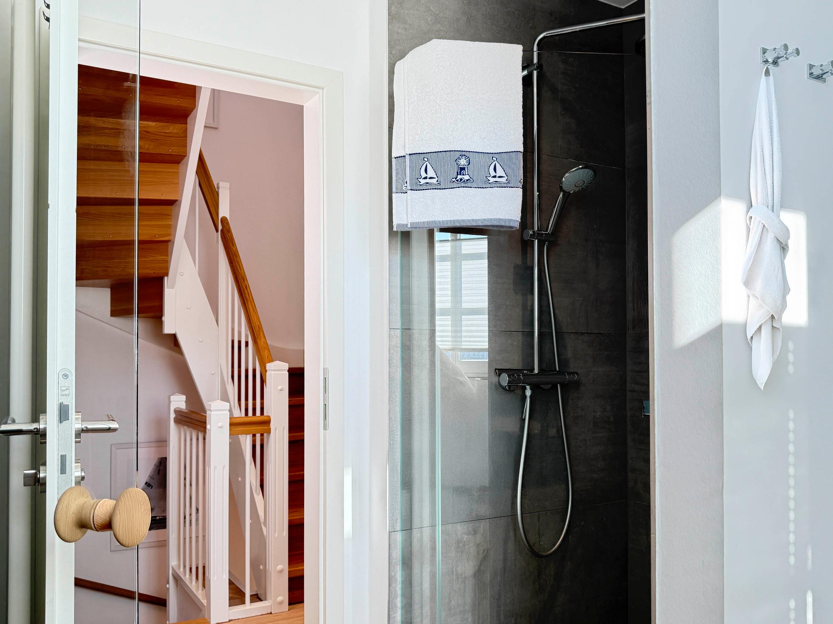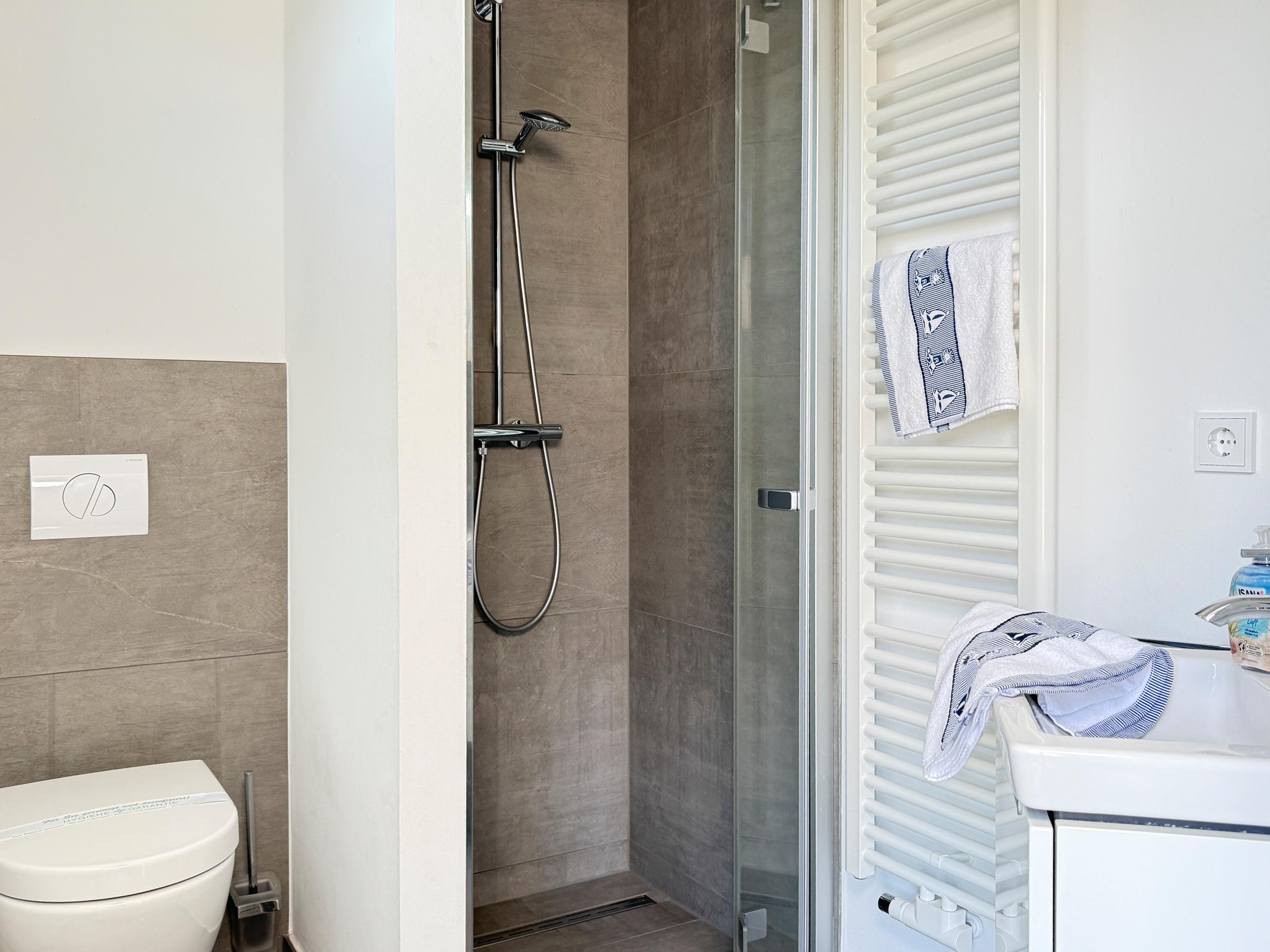 Badezimmer 1: Dusche/WC mit Fußbodenheizung und Haartrockner
