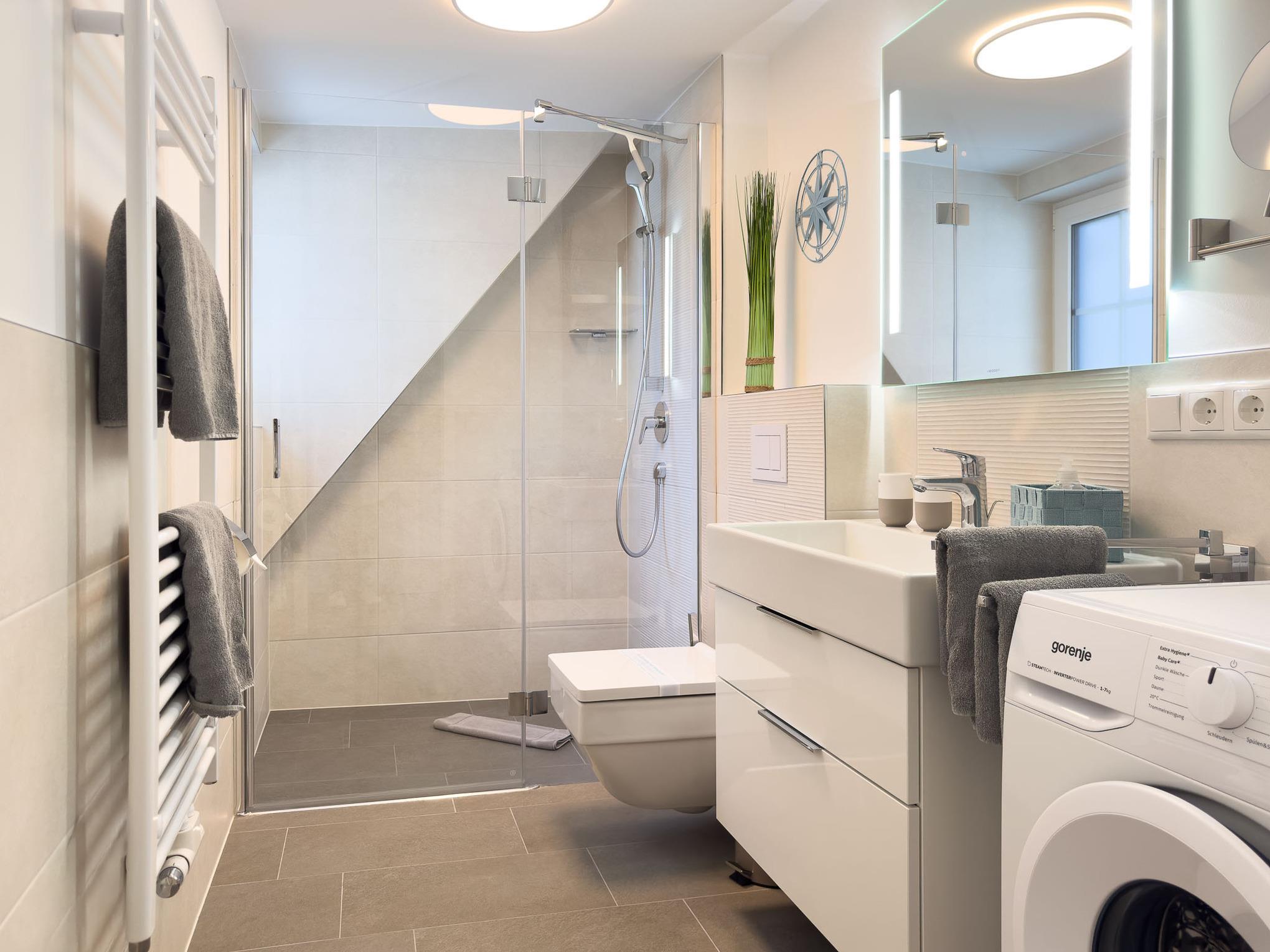 Modernes Badezimmer mit ebenerdiger Dusche und Fußbodenheizung