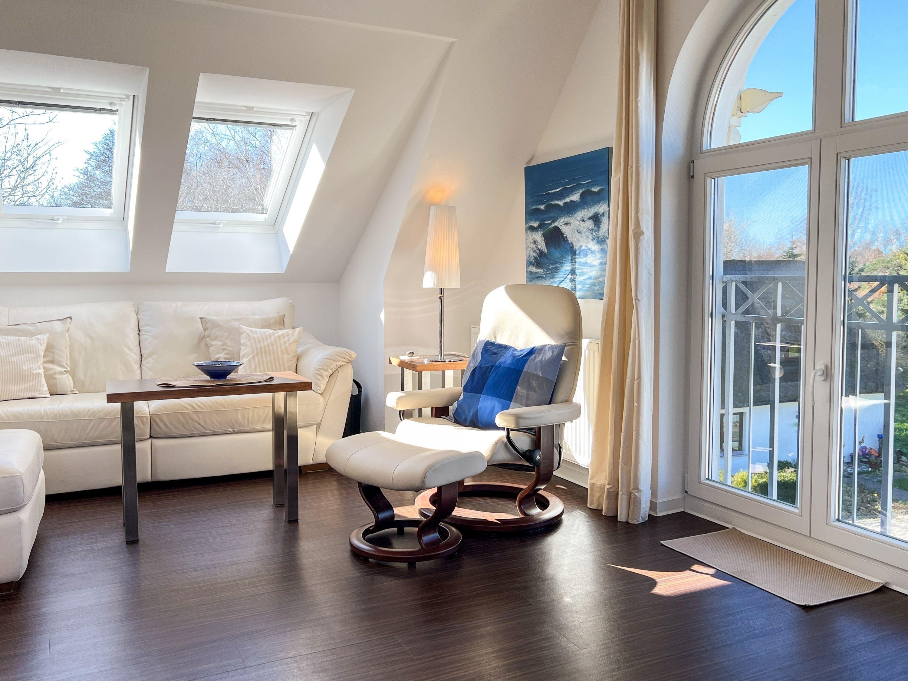 Gemütlicher Wohnbereich mit Schlafcouch und Stressless-Sessel