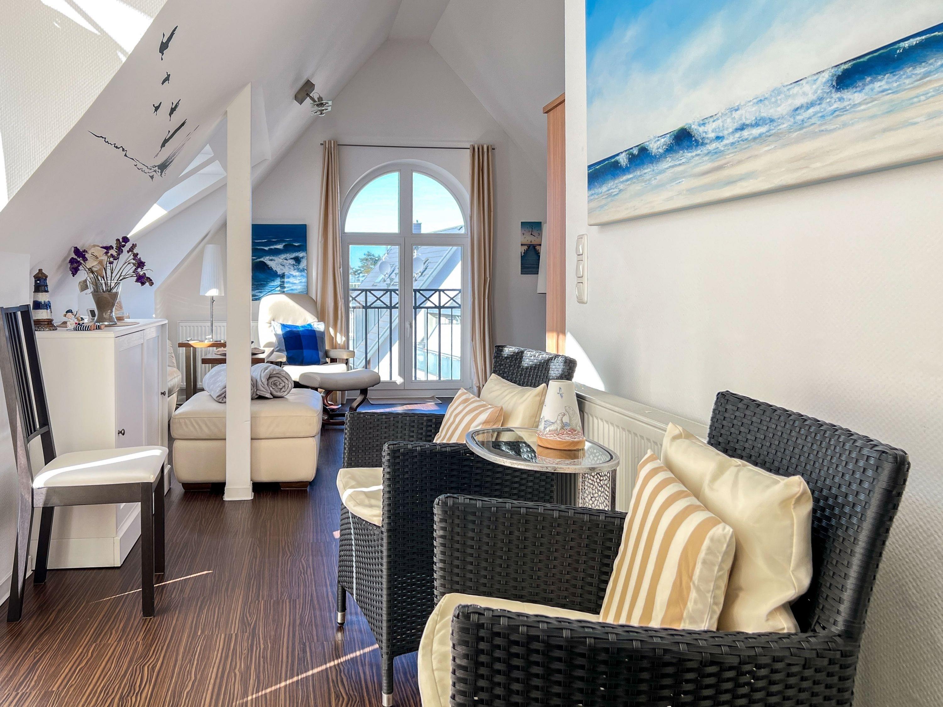 Beginnen Sie den Tag auf Ihrem Balkon und genießen Sie die frische Meeresbrise. Nach einem Tag an der Ostsee bietet der Balkon den perfekten Ort, um bei einem Glas Wein zu entspannen. Ein Elektrogrill und ein Sonnenschirm stehen für gemütliche Stunden im Freien zur Verfügung.
