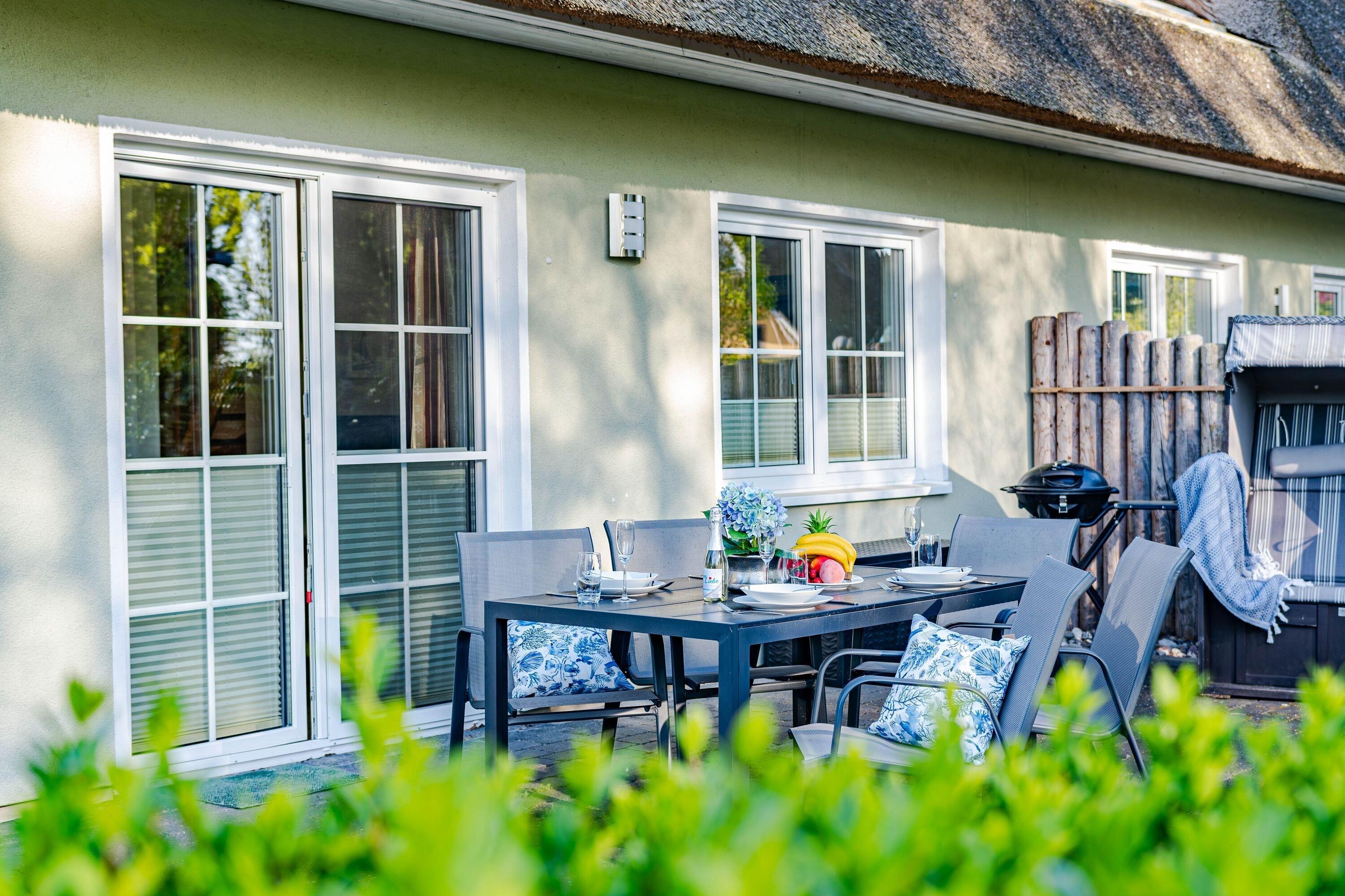 Terrasse mit Garten und eigenem Strandkorb