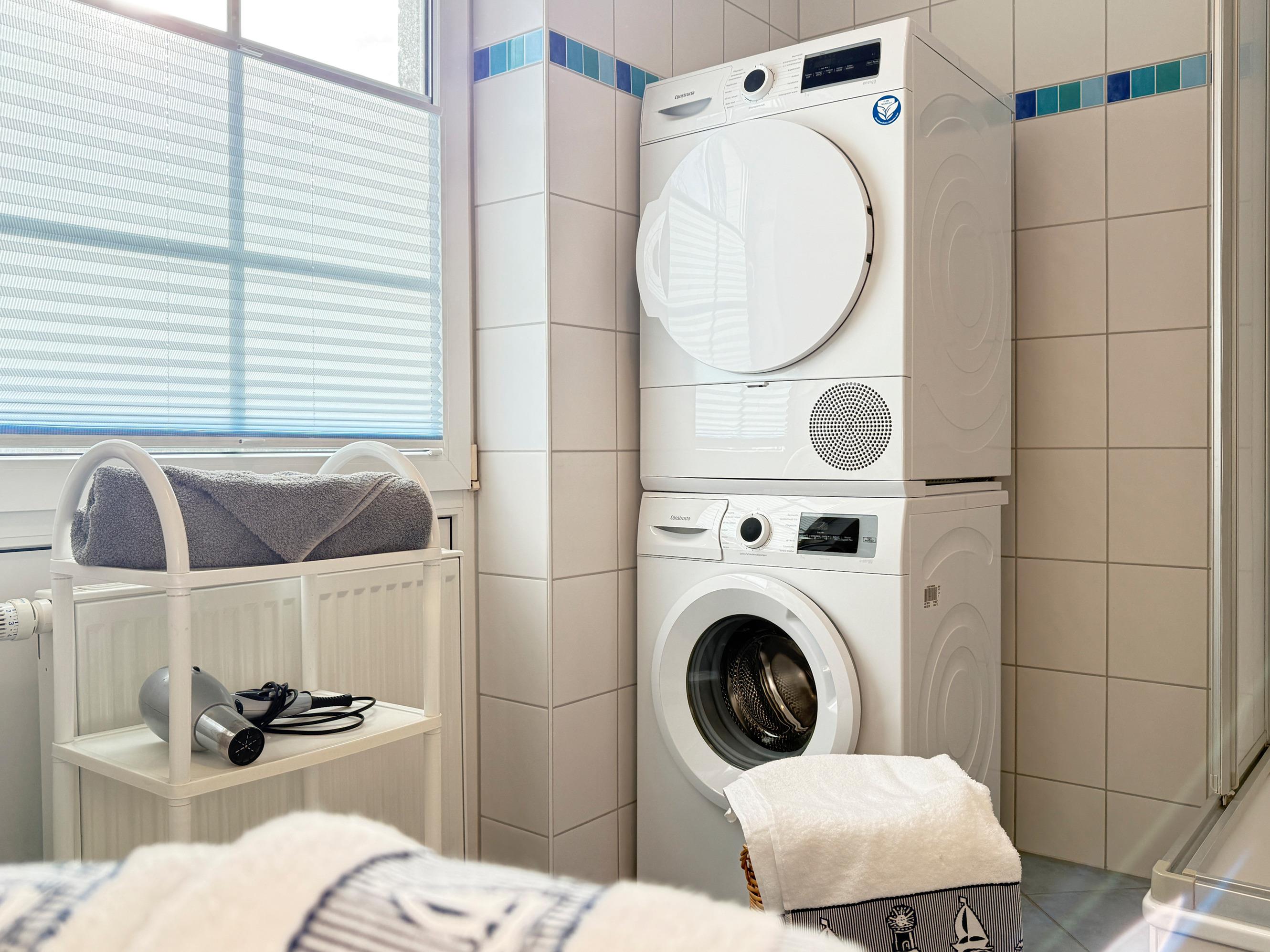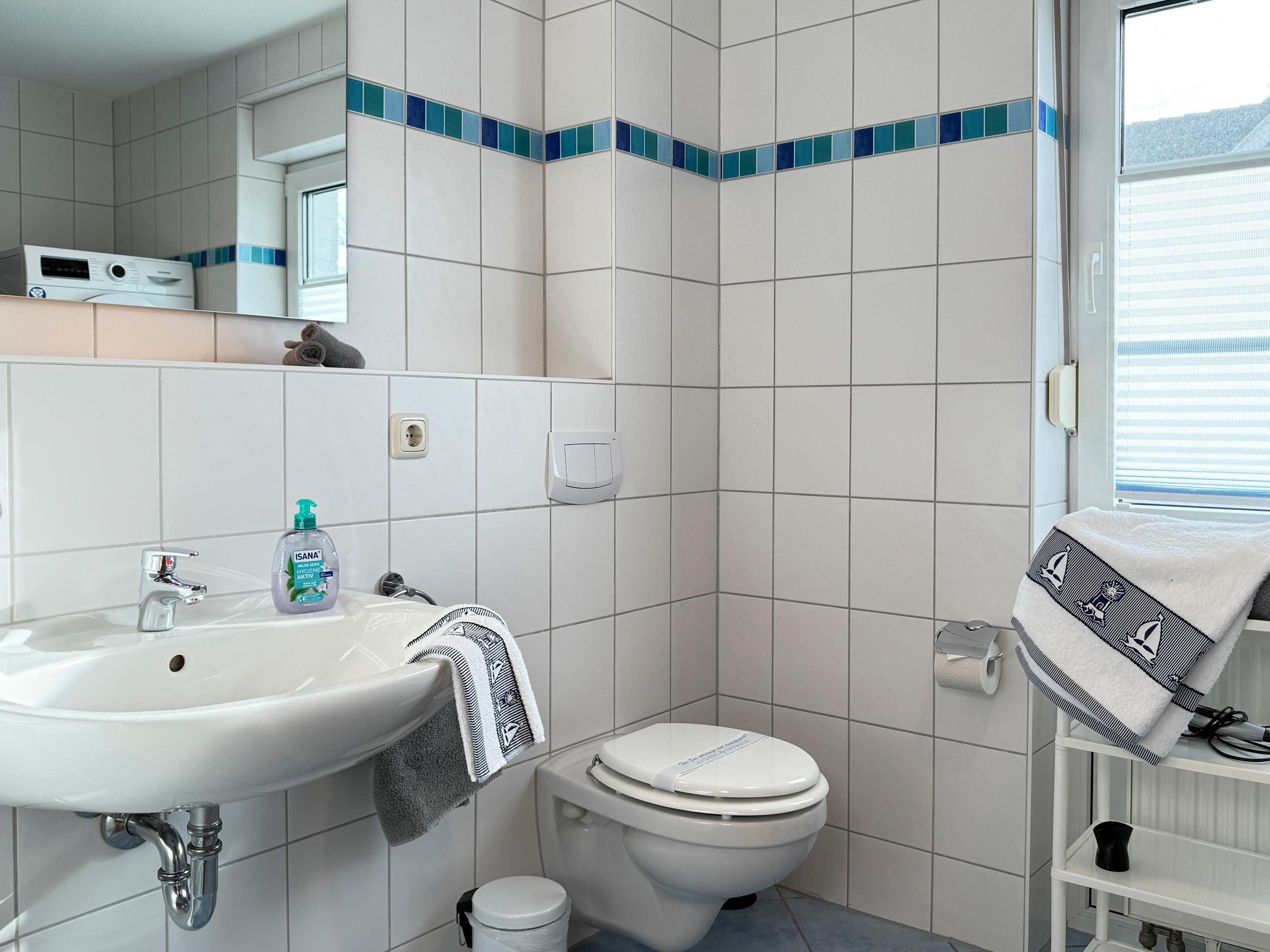 Badezimmer 1: Ebenerdige Dusche/WC mit Fußbodenheizung und Haartrockner