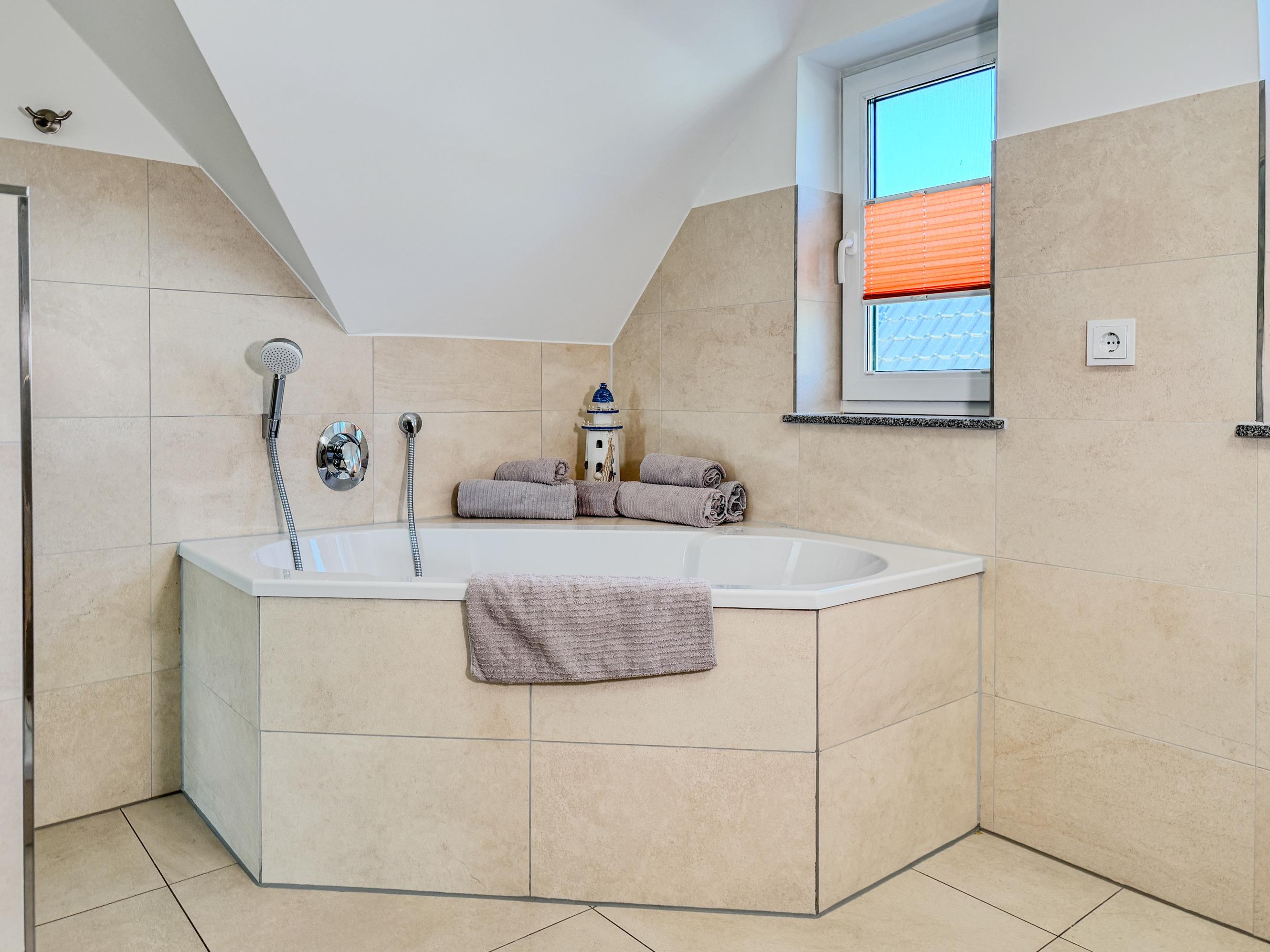 Zwei Badezimmer: modern ausgestattet, eines mit großzügiger Badewanne