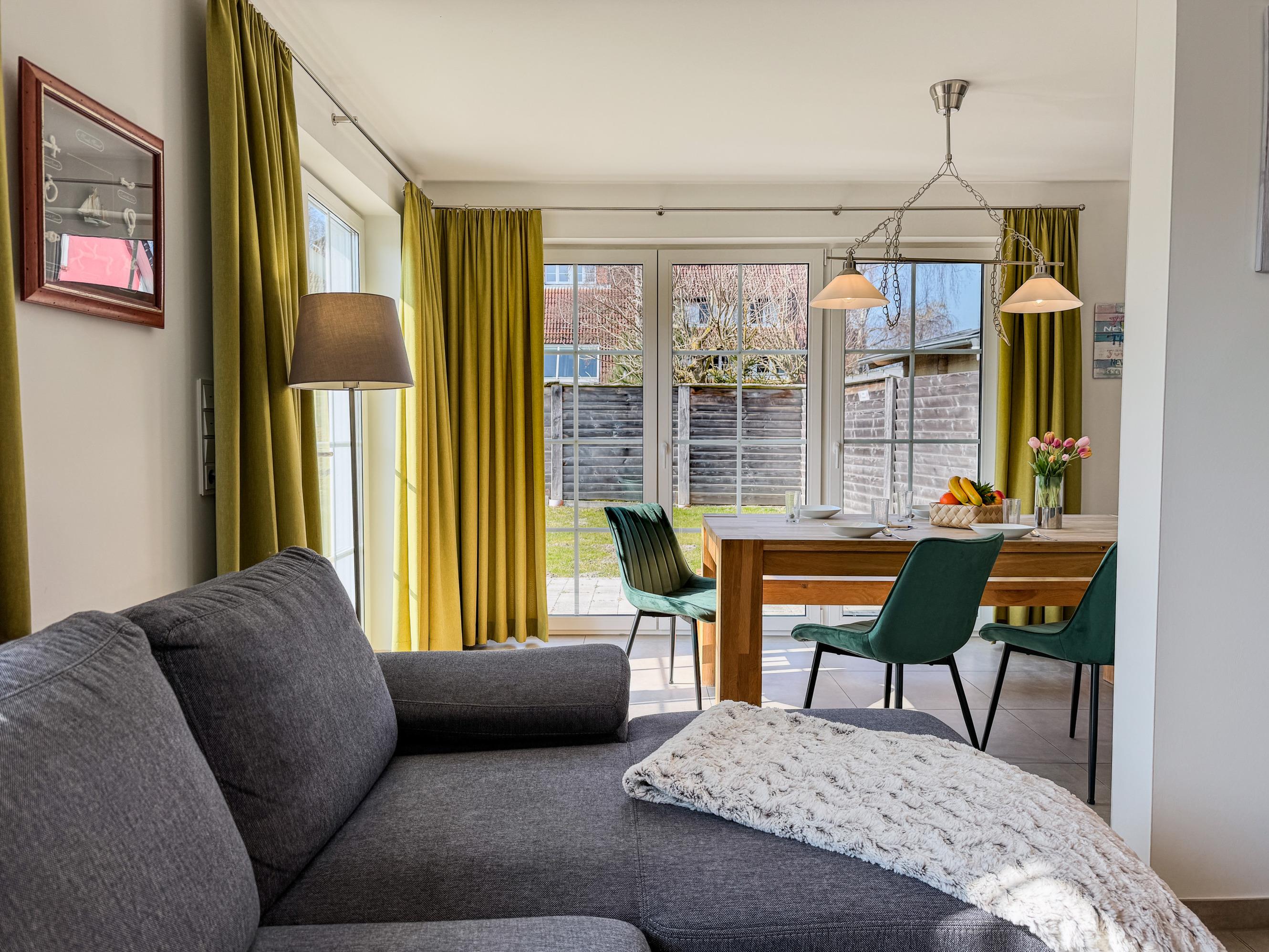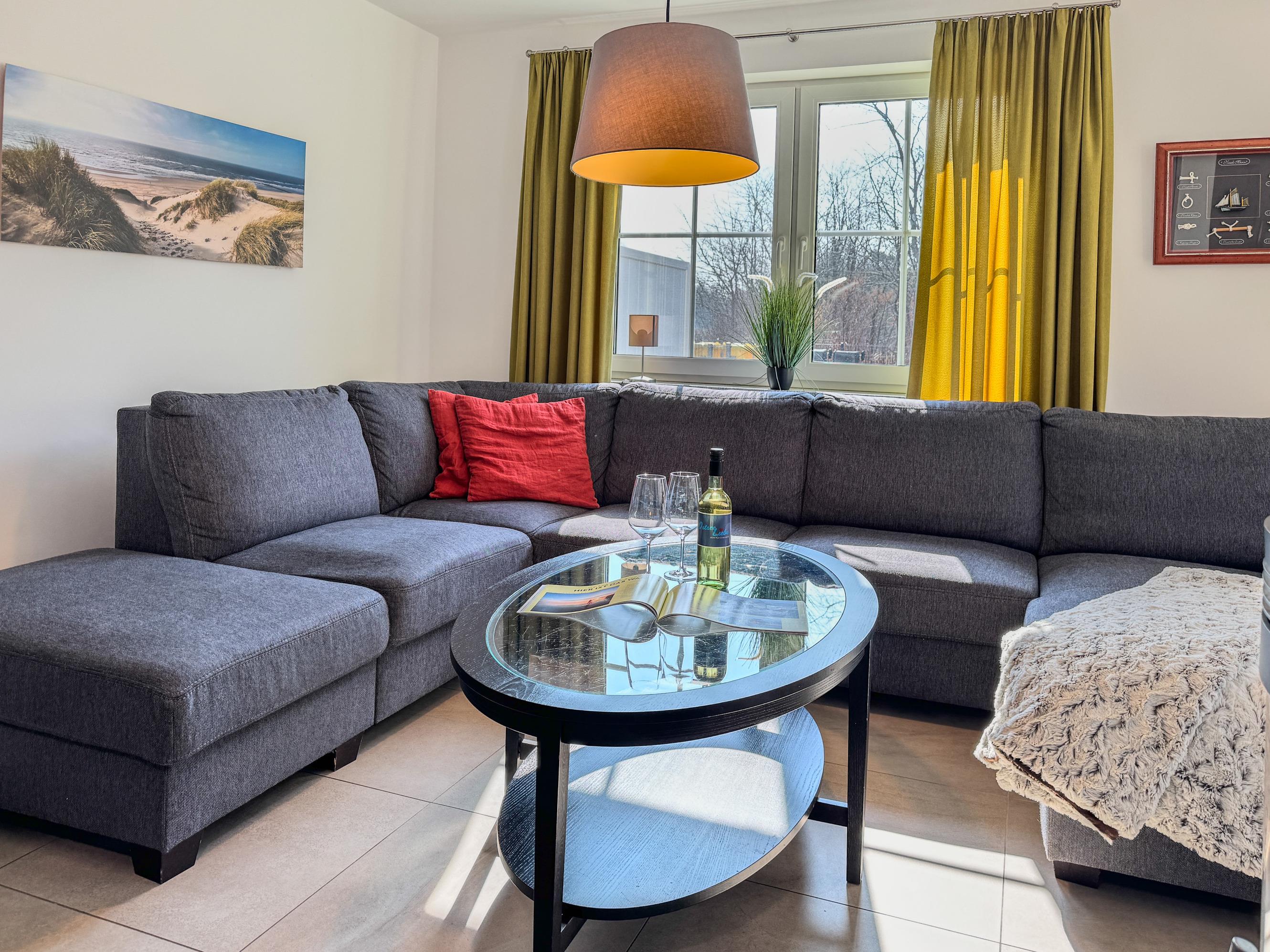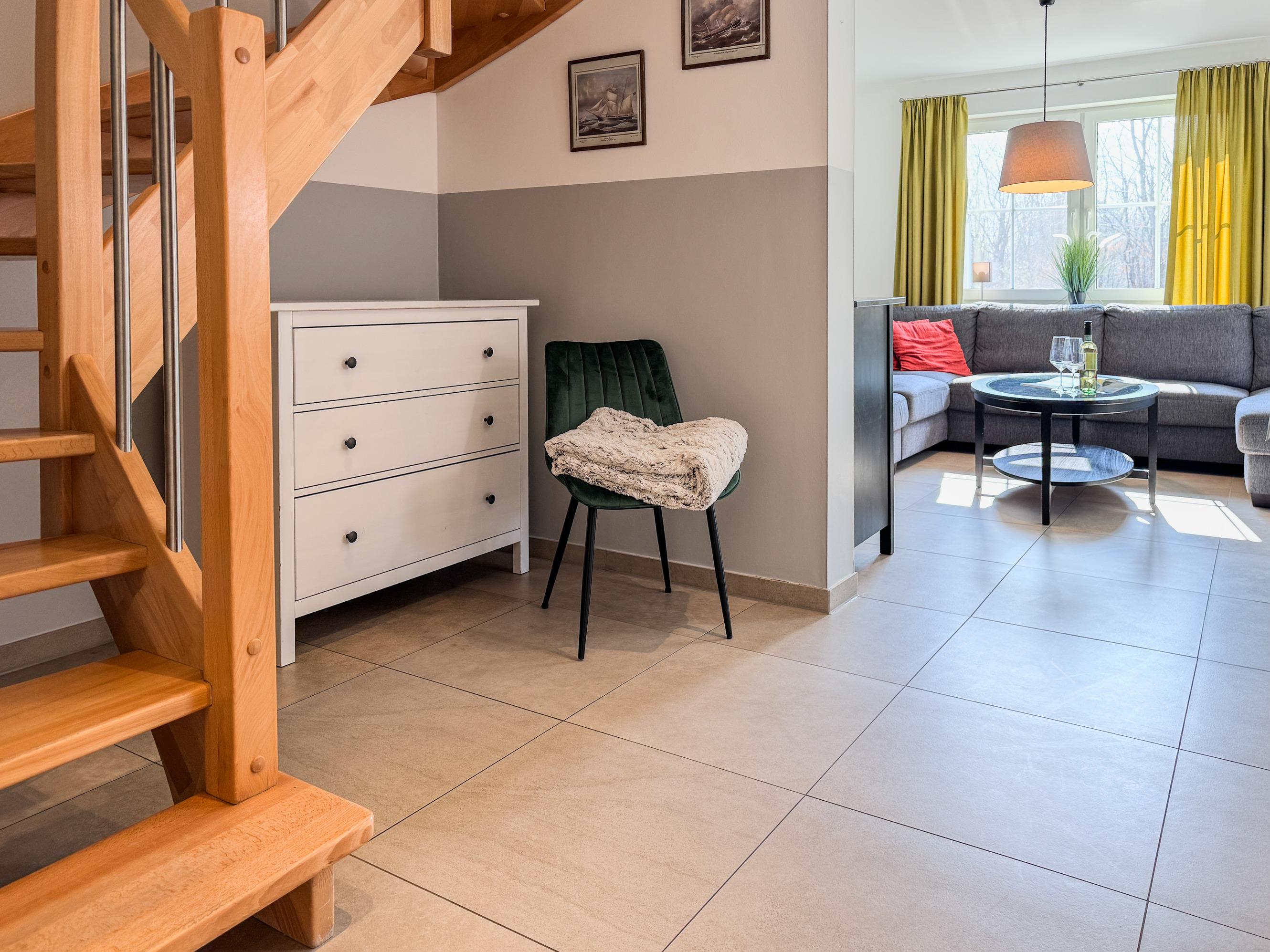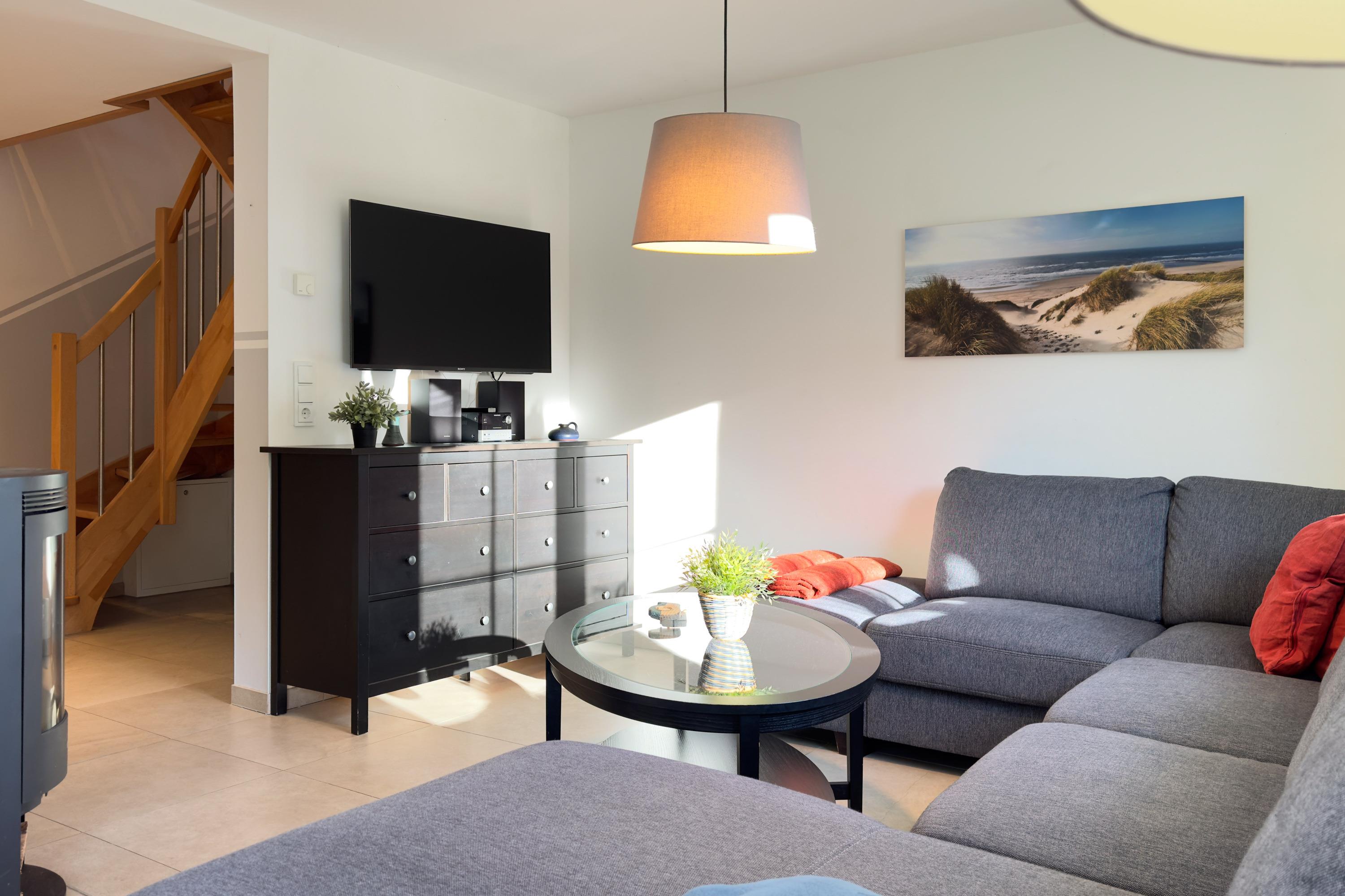 Das Ferienhaus Windland empfängt Sie mit einer warmen und einladenden Atmosphäre. Der großzügige Wohnbereich mit Kamin ist das Herz des Hauses und lädt zu entspannten Abenden ein – sei es bei einem guten Buch oder einem gemeinsamen Spieleabend. Die moderne Küche ist vollständig ausgestattet, sodass Sie mühelos köstliche Mahlzeiten für Ihre Liebsten zubereiten können.