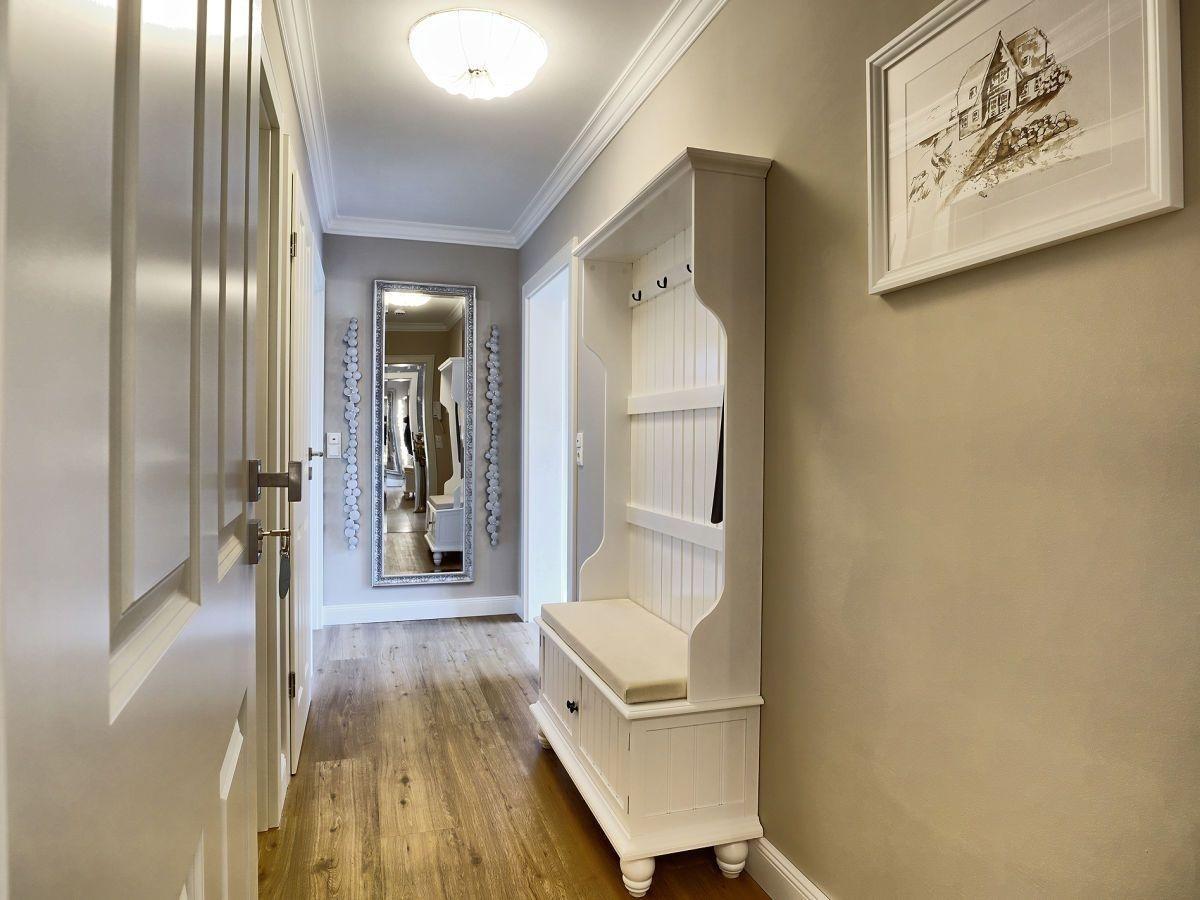 Die Ferienwohnung verspricht schon beim Eintreten himmlische Urlaubstage in bester Lage. Sie befindet sich im Erdgeschoß und hat eine große Terrasse mit Essecke und Sonnenliegen bzw. Strandkorb. Die Terrasse ist südlich ausgerichtet.