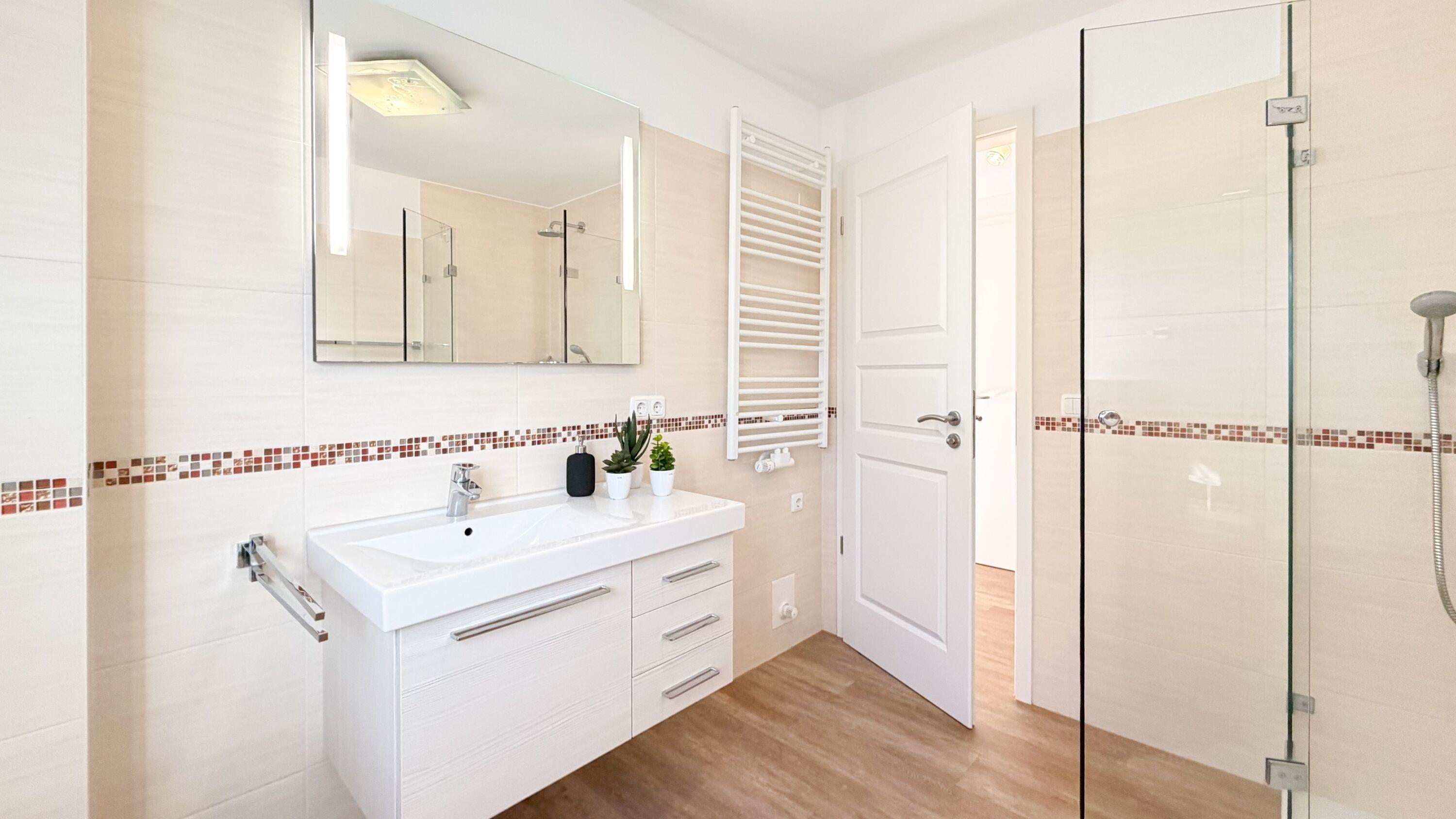 Auf dem großzügigen Balkon genießen Sie sonnige Stunden in ruhiger Atmosphäre – ideal für ein entspanntes Frühstück oder den Ausklang eines Urlaubstages.