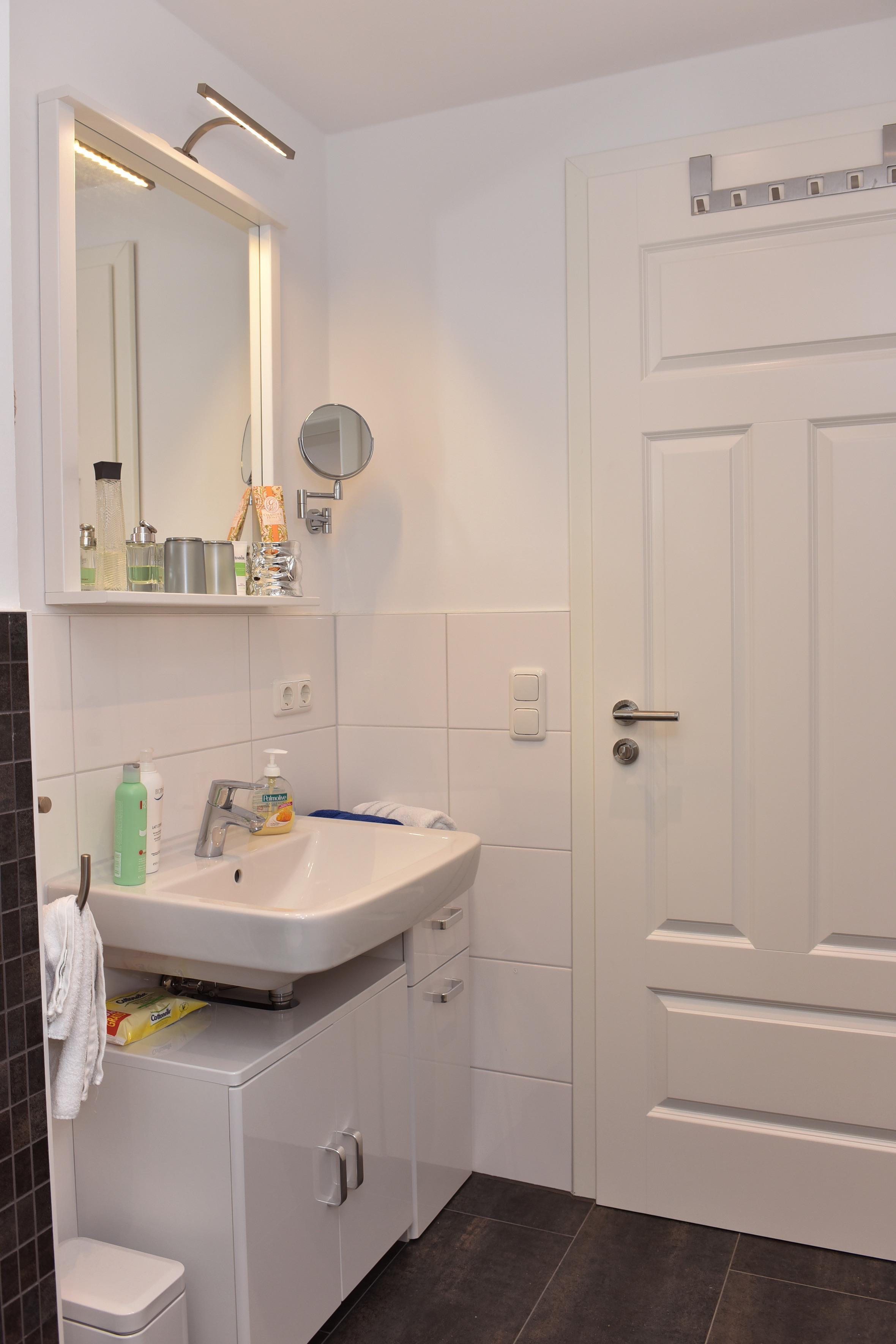 Das Schlafzimmer verfügt über ein Komfort- Doppelbett und einen großen Kleiderschrank. Das Badezimmer bietet Fußbodenheizung, eine große ebenerdige Dusche, einen Kosmetikspiegel, einen Handtuchtrockner - der auch im Sommerbetrieb läuft - einen Haartrockner sowie ein integriertes Radio. Genießen Sie am Morgen Ihr Frühstück auf komfortablen Rattanmöbeln auf dem nach Osten ausgerichteten Balkon direkt an der Wohnküche, sonnen Sie sich etwas später am Tag auf der Sonnenliege auf dem nach Süden ausgerichteten Balkon am Wohnzimmer und setzen Sie sich am Abend zu einem Glas Wein auf den Balkon am Schlafzimmer. Ein Pkw- Stellplatz direkt vor der Haustür und ein Fahrradabstellraum stehen Ihnen ebenfalls