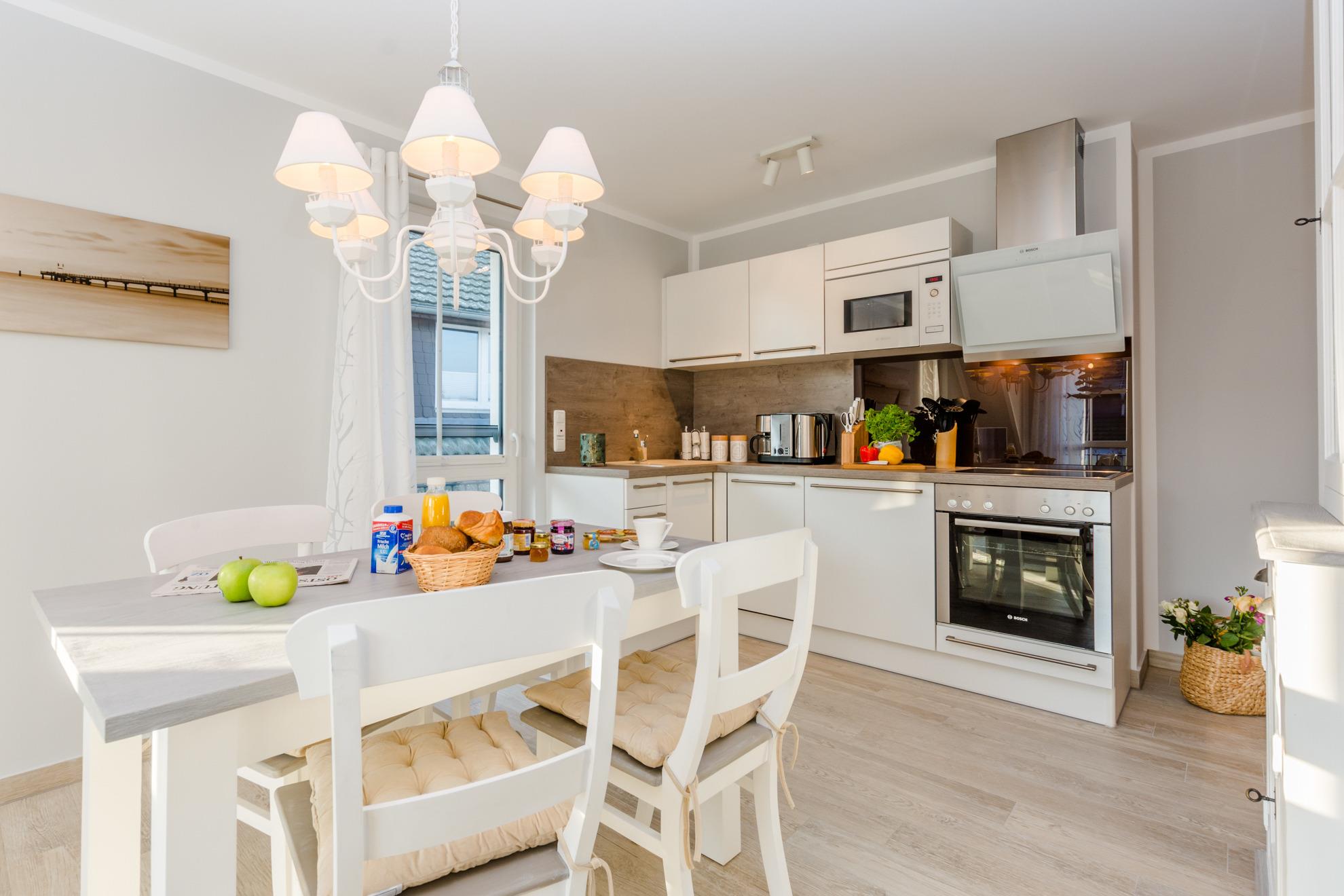 Einbauküche verfügt über Geschirrspüler, Herd/Backofen, Mikrowellengerät und Kühlschrank mit Gefrierfach. Das geräumige Badezimmer (mit Fenster) ist mit bodengleicher Dusche und modernen Badmöbeln ausgestattet. Im Schlafzimmer befindet sich ein hochwertiges Boxspringbett (180x200 cm, Komforthöhe), ein HD-TV-Gerät, ein Radiowecker mit i-pod/i-phone-Dock sowie ein Kleiderschrank mit Safe.