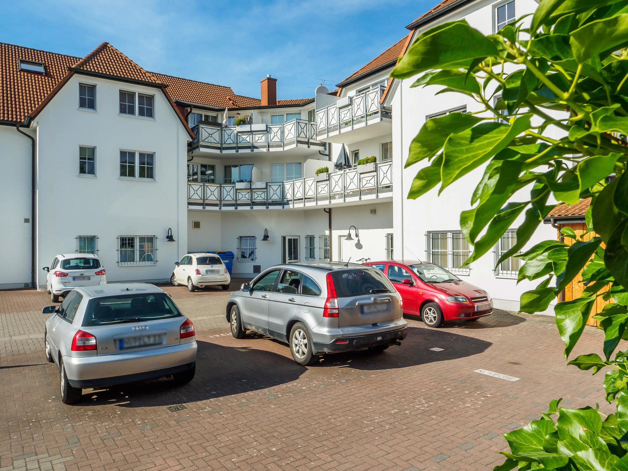 Die im 1. Obergeschoß befindliche Wohnung hat einen Balkon mit Gartenmöbeln, einen Pkw-Stellplatz und einen Fahrradabstellraum.