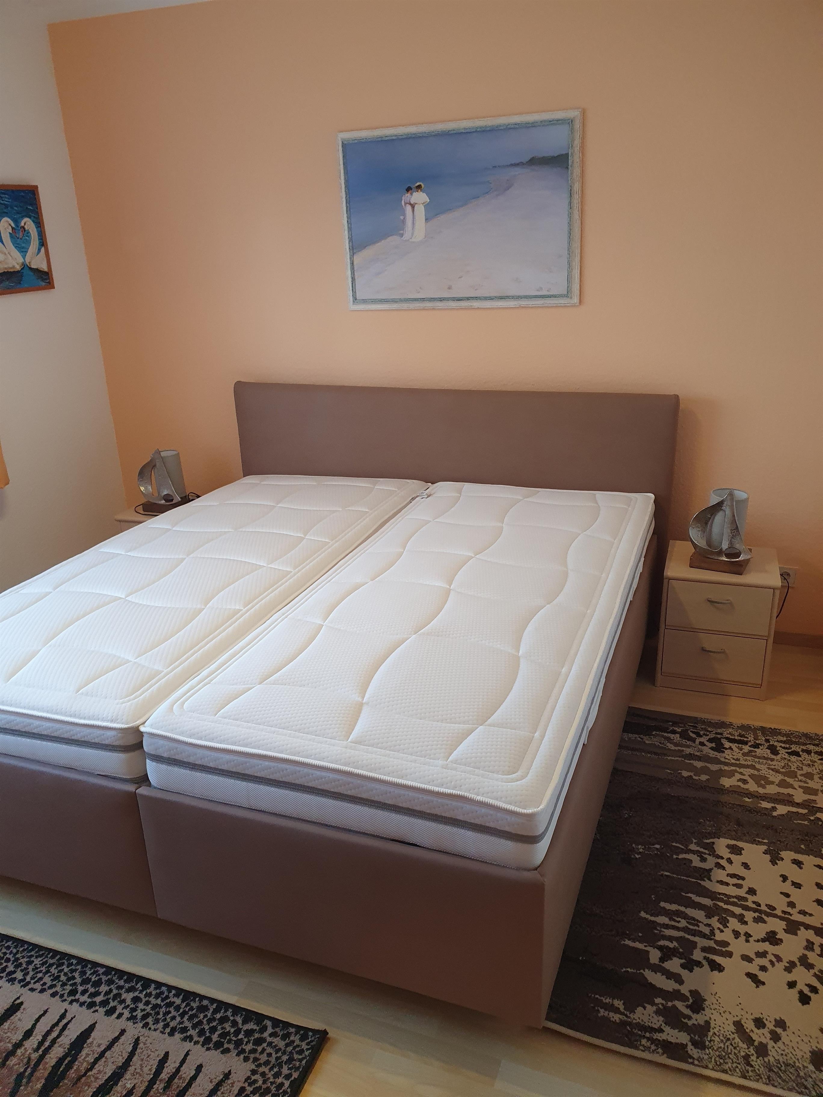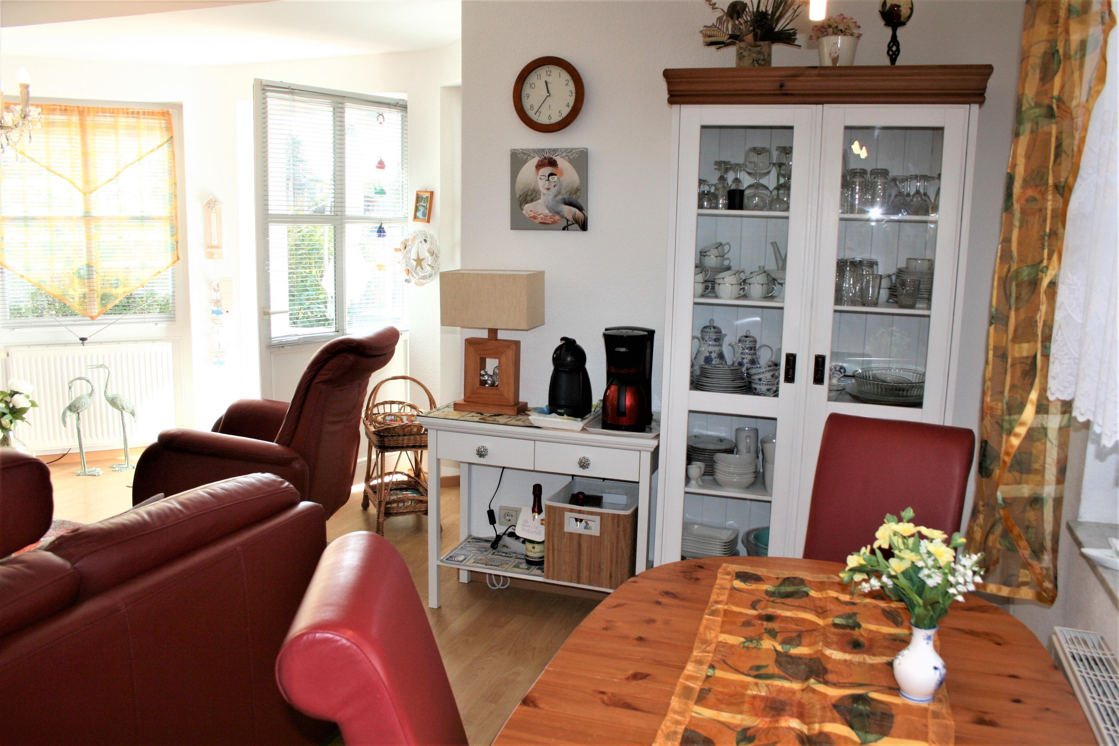 Das geräumige Bad ist ausgestattet mit Badewanne, Dusche und WC. Der Fußbodenbelag in den Wohnräumen ist Laminat, im Bad und vor der Küchenzeile sind Fliesen verlegt. Alle Fenster verfügen über Fliegenschutz und Abdunklungsmöglichkeiten. Zur weiteren Einrichtung gehören ein Sat-TV und ein Radio mit CD-Player und USB-Anschluss. Die Wohnung liegt im EG mit Zugang zu einem kleinen durch Hecken abgeschirmten Garten. Auf der 12 qm großen Terrasse zur Südseite befinden sich Gartenmöbel, Sonnenliege sowie ein Strandkorb. Zur Beschattung gibt es einen großen Sonnenschirm mit Leier. Ein Pkw-Stellplatz sowie ein abschließbarer Fahrradschuppen für 2 Fahrräder stehen Ihnen zur Verfügung. Die Wohnung liegt in einer kleinen Sackgasse in zentraler Lage in der Nähe des Kurmittelzentrums.