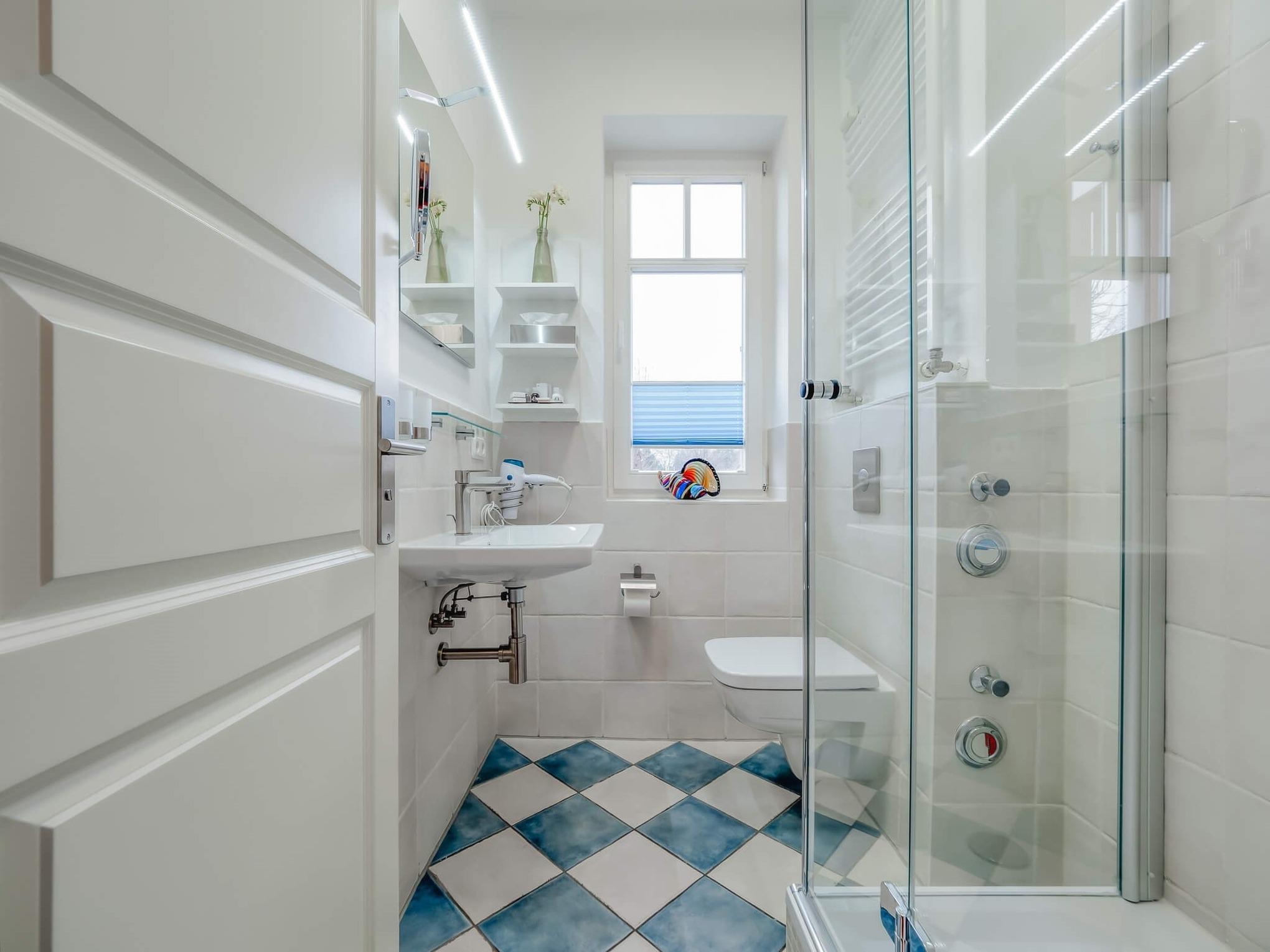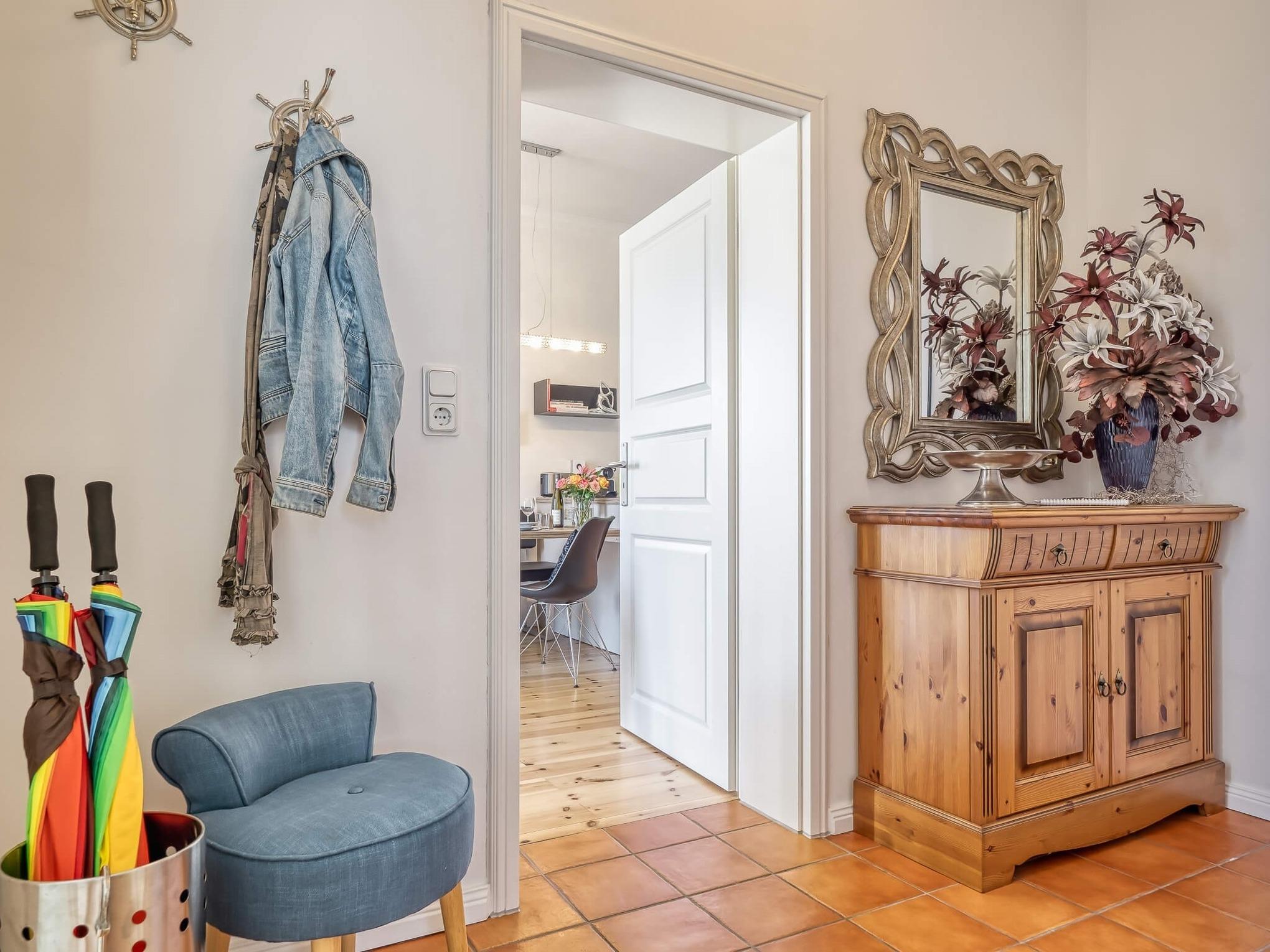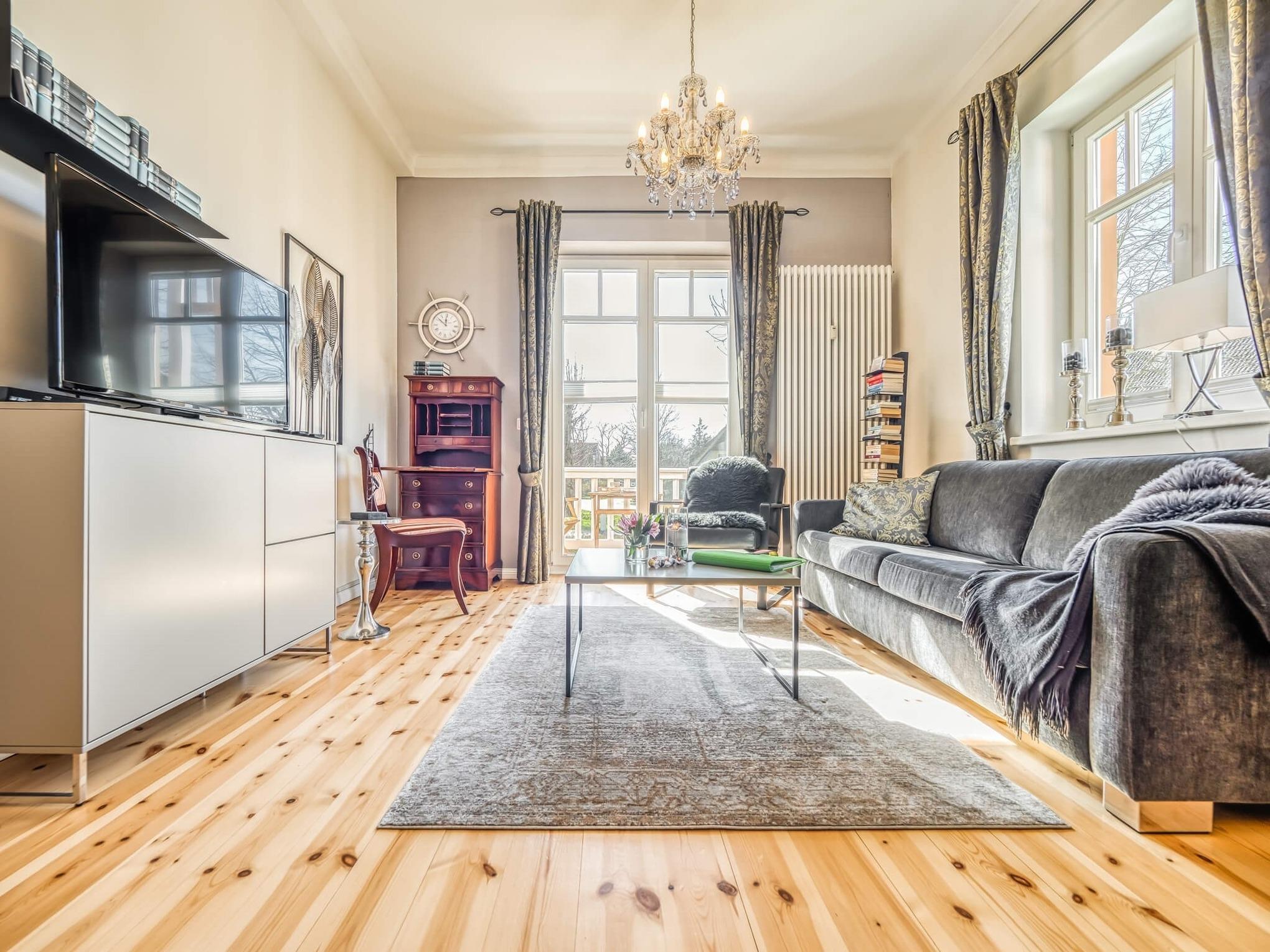 Ruhige Ferienwohnung mit Balkon in saniertem Gründerzeithaus nahe Zingster Fußgängerzone, stilvoll ausgestattet für erholsame Urlaubstage.