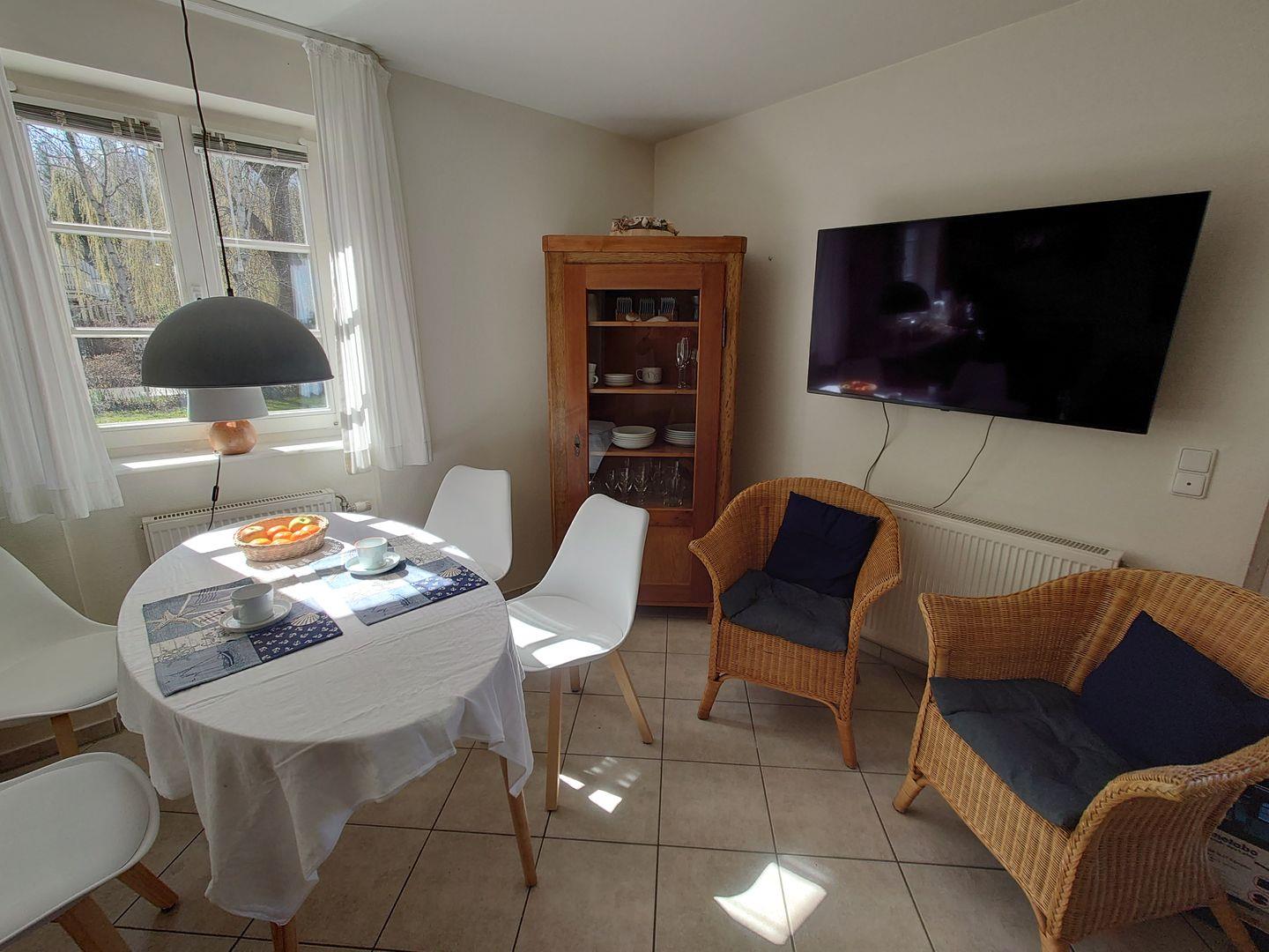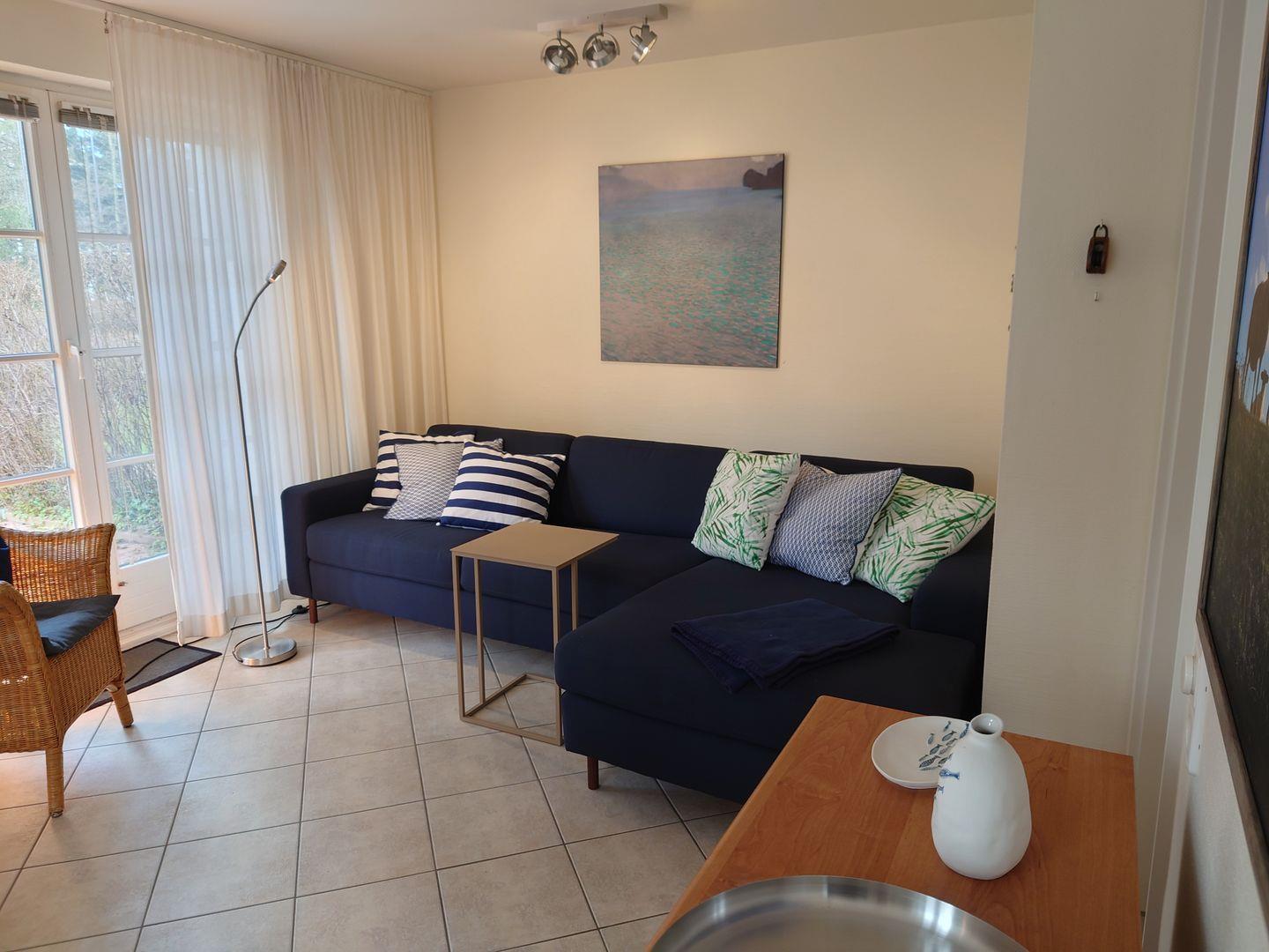 Die Ferienwohnung für zwei Personen liegt Parterre, hat ca. 55 qm Wohnfläche und ist sehr geschmackvoll eingerichtet. Sie besitzt ein Wohnzimmer mit offener und komplett ausgestatteter Küche, ein Schlafzimmer, ein Duschbad und einen kleinen Abstellraum. Vom Wohnzimmer aus gelangen Sie auf die große nach Süd / West ausgerichtete Terrasse. Hier können Sie den Tag gemütlich ausklingen lassen. Im Keller des Hauses haben Sie die Möglichkeit ihre Fahrräder unterzustellen.