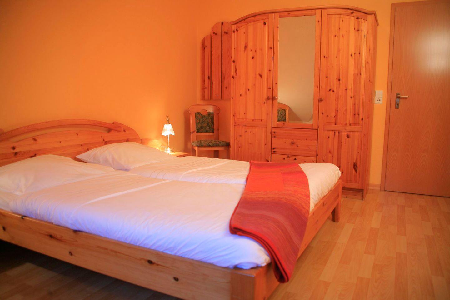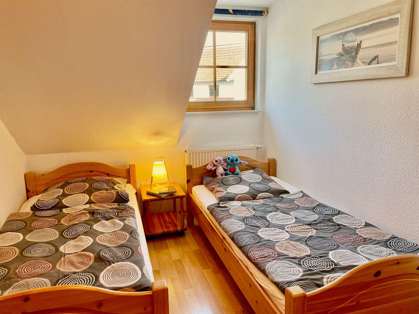 In einem Schlafzimmer befindet sich ein Doppelbett (2 Matratzen je 90 x 200) das zweite Schlafzimmer ist mit 2 Einzelbetten ausgestattet.