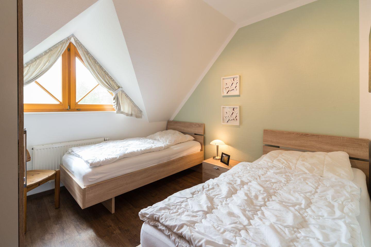 In zwei Schlafzimmern befindet sich je ein Doppelbett (2 Matratzen je 90 x 200) das weitere Schlafzimmer ist mit 2 Einzelbetten ausgestattet.