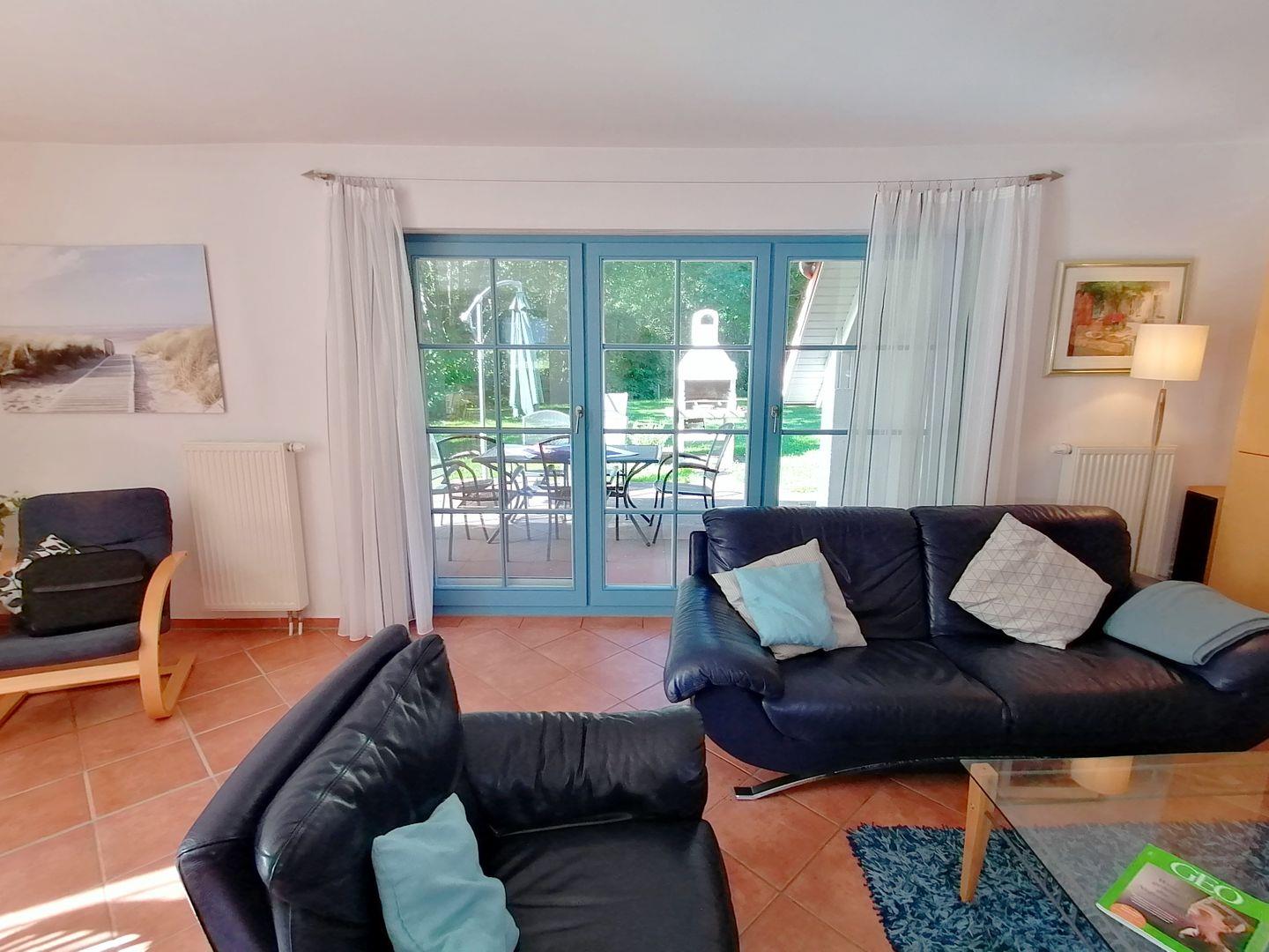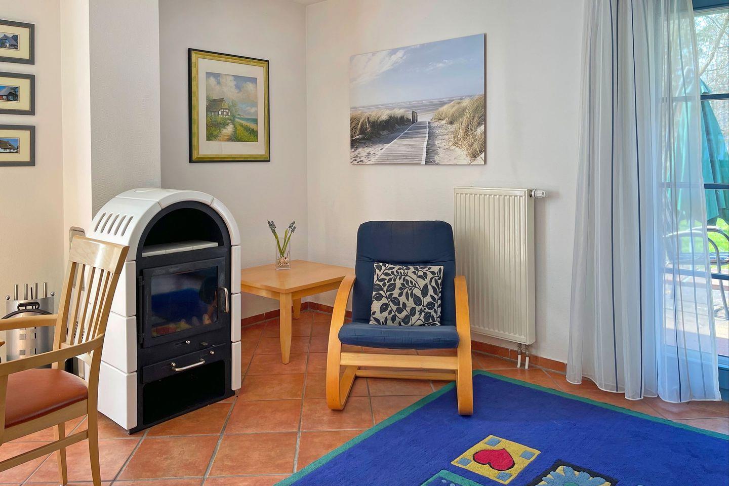 Komfortable Doppelhaushälfte im Ferienpark Freesenbruch mit Kamin, Garten und Sauna, ideal für entspannte Urlaubstage.