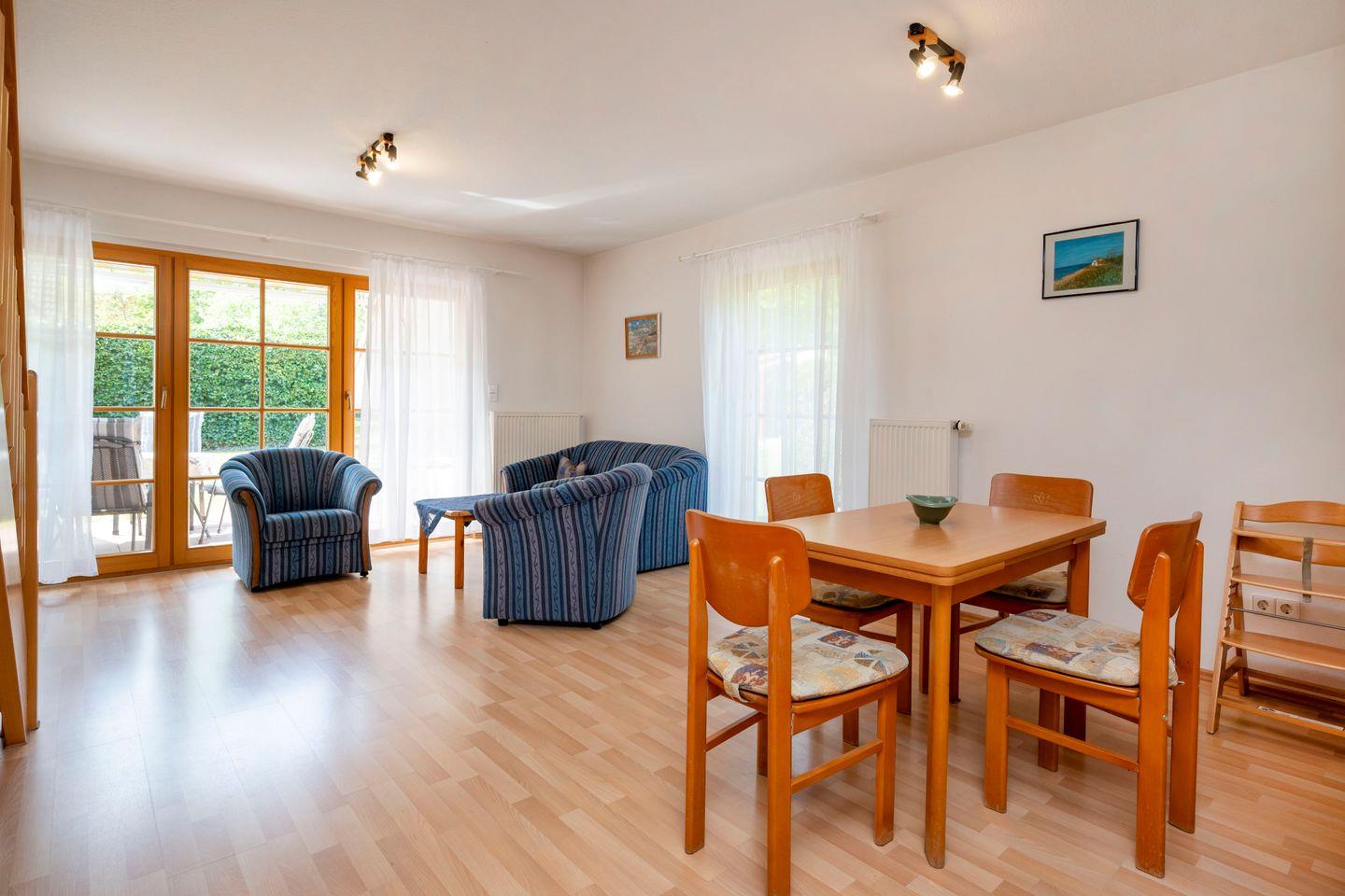 Vom Wohnzimmer gelangen Sie auf die möblierte Terrasse.