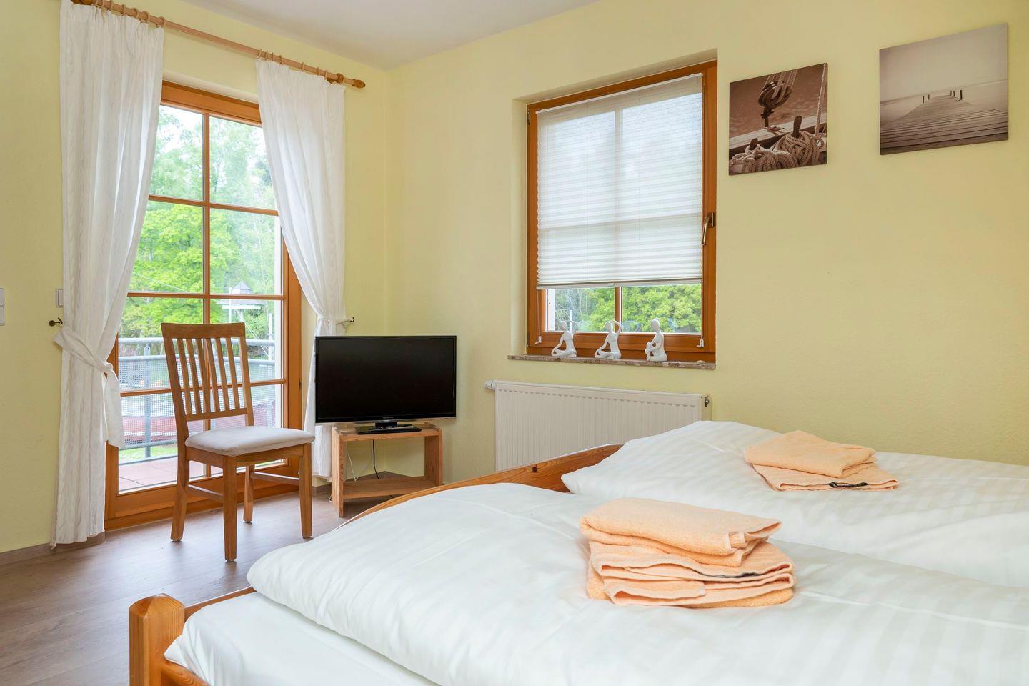 Im Schlafzimmer befindet sich ein Doppelbett (2 Matratzen je 90 x 200)