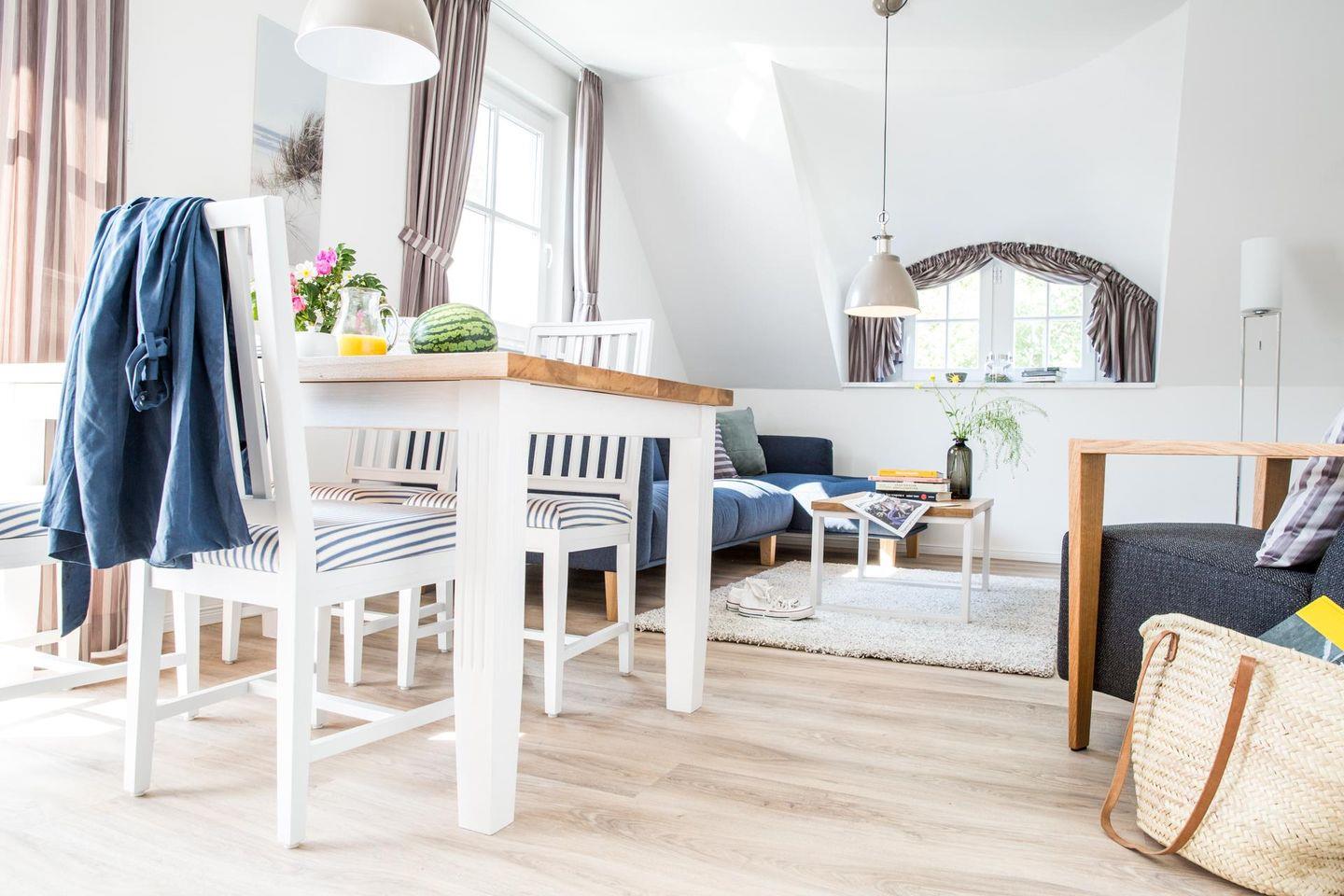 Moderne Ferienwohnung Buhnen 2.4 in Zingst, nur 70 m vom Strand entfernt, ideal für Naturfreunde und Aktivurlauber.
