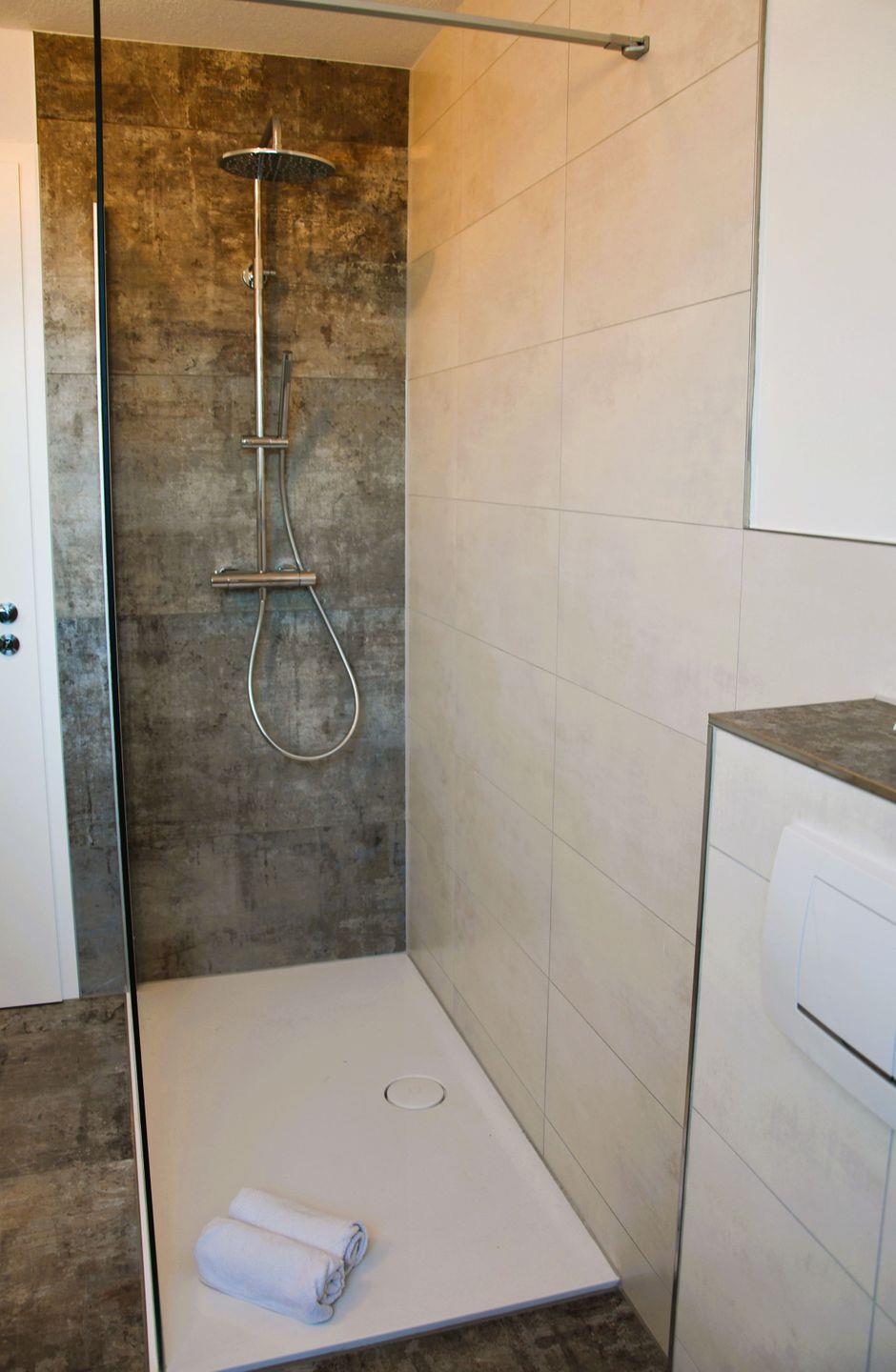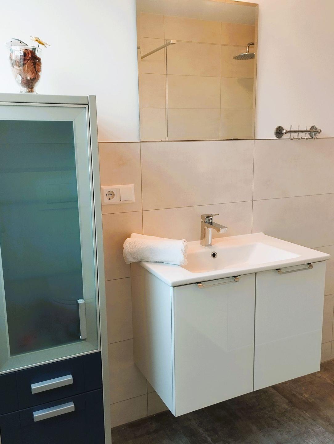 Das Wohnzimmer verfügt über ein gemütliches Sofa und die offene Küche ist mit allem Notwendigen ausgestattet. Die Wohnung hat 2 Badezimmer und 2 Schlafzimmer. In dem oberen Schlafzimmer ist ein TV vorhanden. Ein Badezimmer ist gerade frisch renoviert und hat ein modernes Design. Die neue Dusche ist so konstruiert, dass unsere Gäste die Dusche auch mit Badeltaschen betreten können.