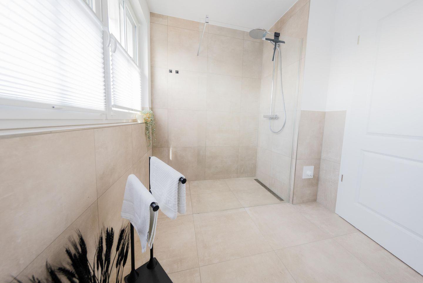 Die beiden Bäder sind mit einer bodentiefen Dusche, Handtuchheizkörper, Föhn ausgestattet. Die Sauna ist im Erdgeschoss im kleinen Bad eingebaut und kann für 2,00 € / 2 Stunden genutzt werden. Dieses haben wir nachträglich aus Sicherheitsgründen eingebaut.