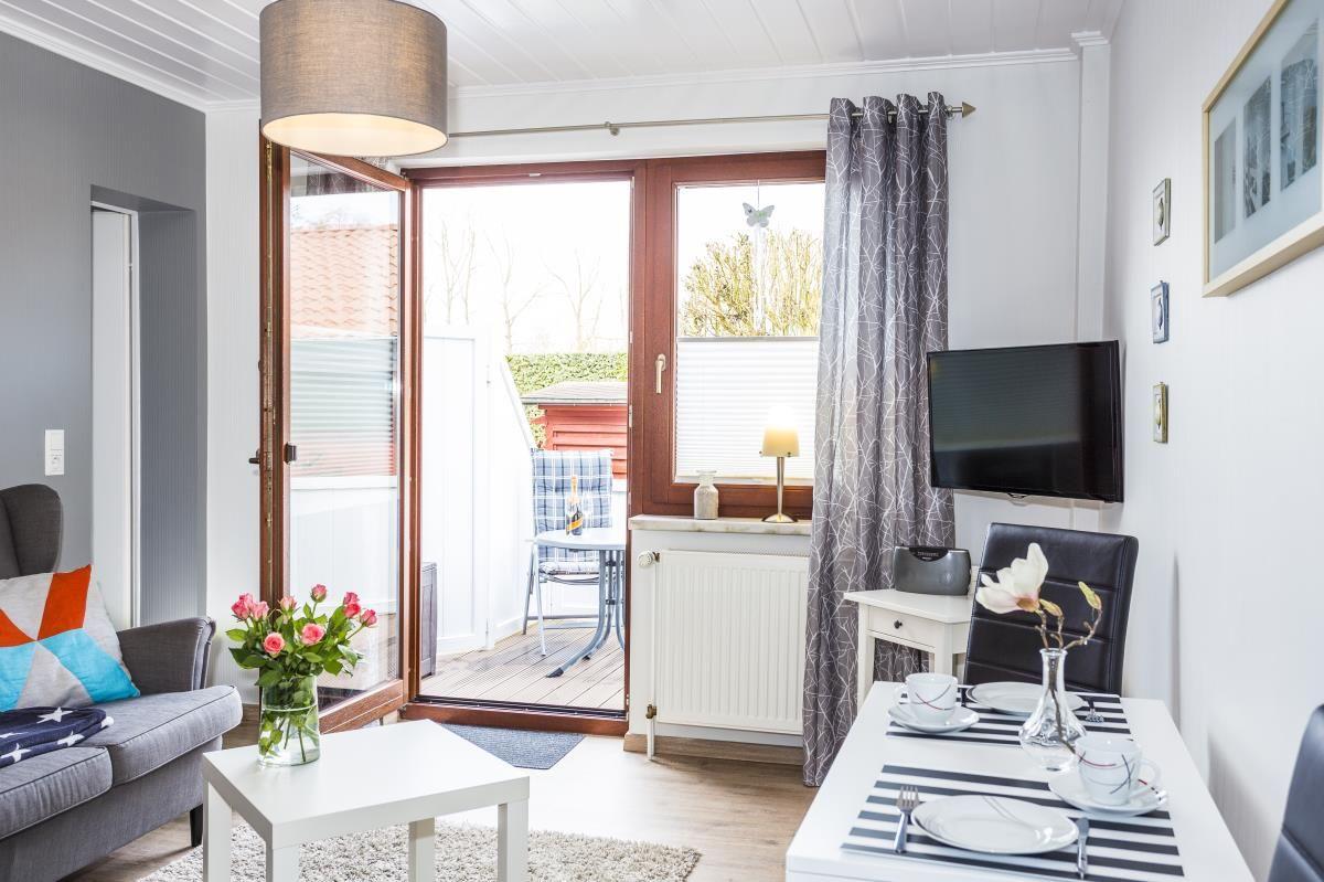 Gemütliche, moderne Ferienwohnung mit WLAN für 2 Personen im EG mit TV, Duschbad, Küche, Terrasse und PKW-Stellpatz in ruhiger Lage, nur 5 Minuten vom Strand entfernt.