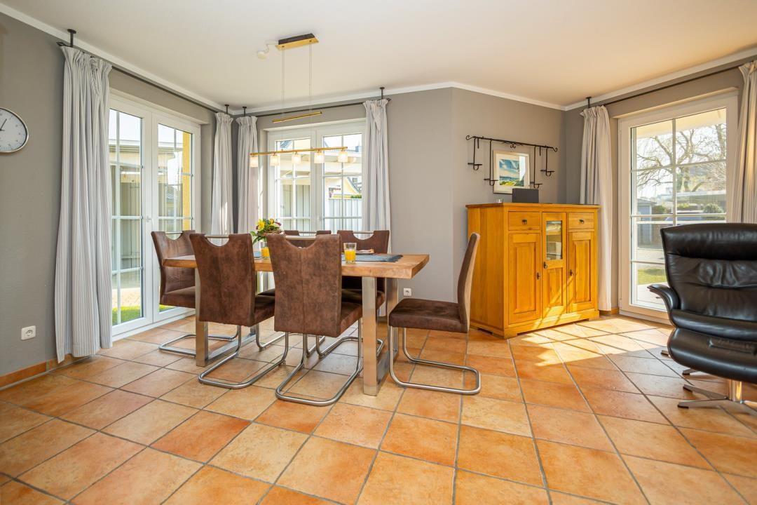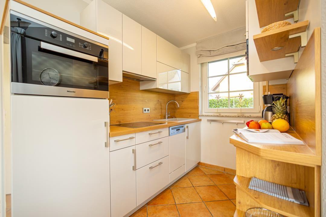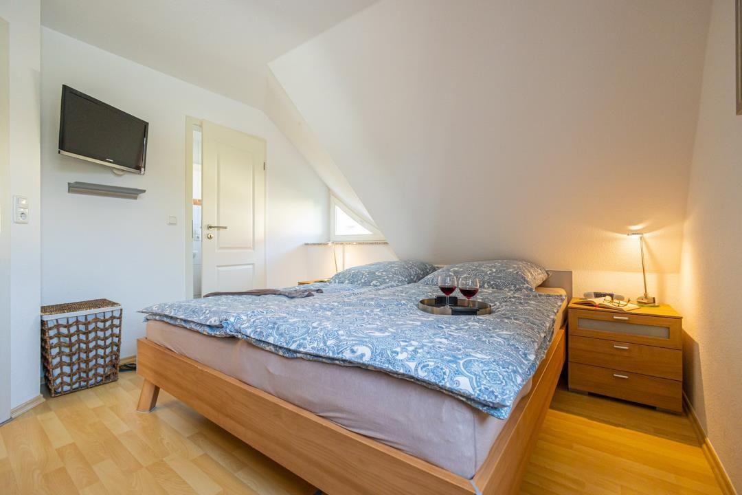 Gut ausgestattete, moderne reetgedeckte Doppelhaushälfte für 4 Pers. mit Kamin, Sauna, 2 Schlafzimmern, 2 Bädern, WLAN und 2 PKW-Stellplätzen auf 250 m² Grundstücksfläche in ruhiger Lage