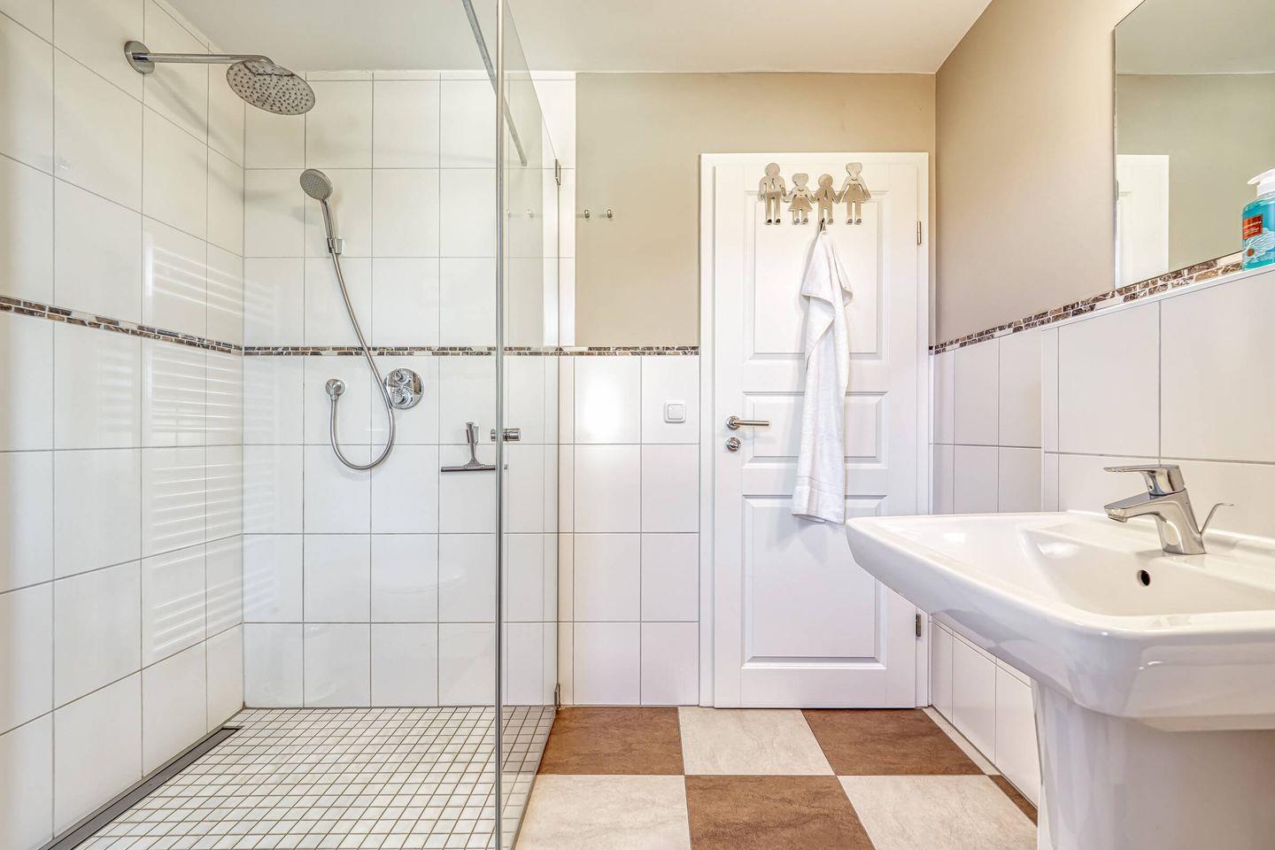 Beide Bäder (EG und 1. OG) haben eine Fußbodenheizung, einen Handtuchheizkörper, eine großzüge Dusche, Waschbecken und WC. Im EG Bad ist unsere tolle Sauna eingebaut. Hier können Sie für 2,00 € entspannt saunieren. Im Hauswirtschaftsraum befindet sich eine Waschmaschine und ein Trockner, beide auch für 2,00 € nutzbar. Bei Bedarf steht Ihnen ein Kinderhochstuhl sowie ein Kinderreisebett mit Matratze kostenlos zur Verfügung. Das gesamte Haus hat einen Korkfußboden mit Holzoptik bzw. Fliesen.
