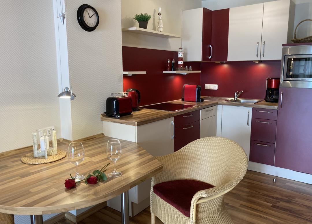 Wunderschöne, komfortable Ferienwohnung, 55 qm im 1.OG 4 Personen (maximal 2 Erwachsene mit 2 Kindern), 1 Schlafzimmer, 1 Bad, Einbauküche, Süd-Balkon, PKW-Stellplatz, WLAN, Zentrum, ruhige Lage, strandnah. Nichtraucherwohnung, Allergiker geeignet, Haustiere sind nicht erwünscht