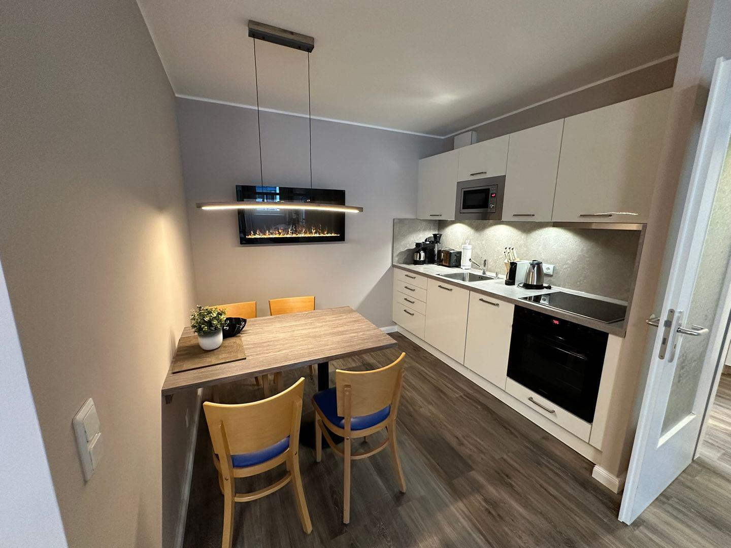 Freuen Sie sich ab Frühjahr 2024 auf einen Urlaub in einer modernen und schicken Ferienwohnung mit einer neuen, voll ausgestatteten Küchenzeile, renoviertem Bad, einem Elektrokamin, und 2 Fernsehern: Wohnzimmer 55“; Schlafzimmer 43“.