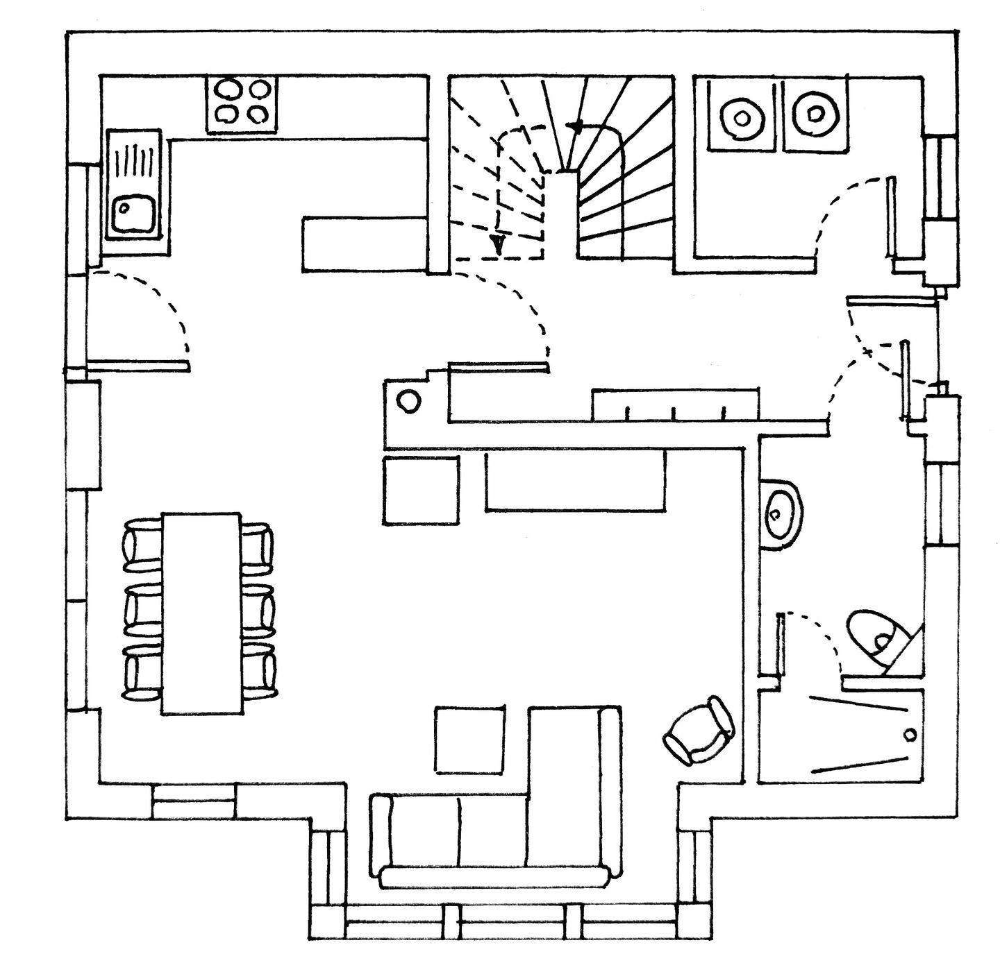 maximal 4 Erwachsenen und 2 Kindern angemietet werden. Im Erdgeschoss