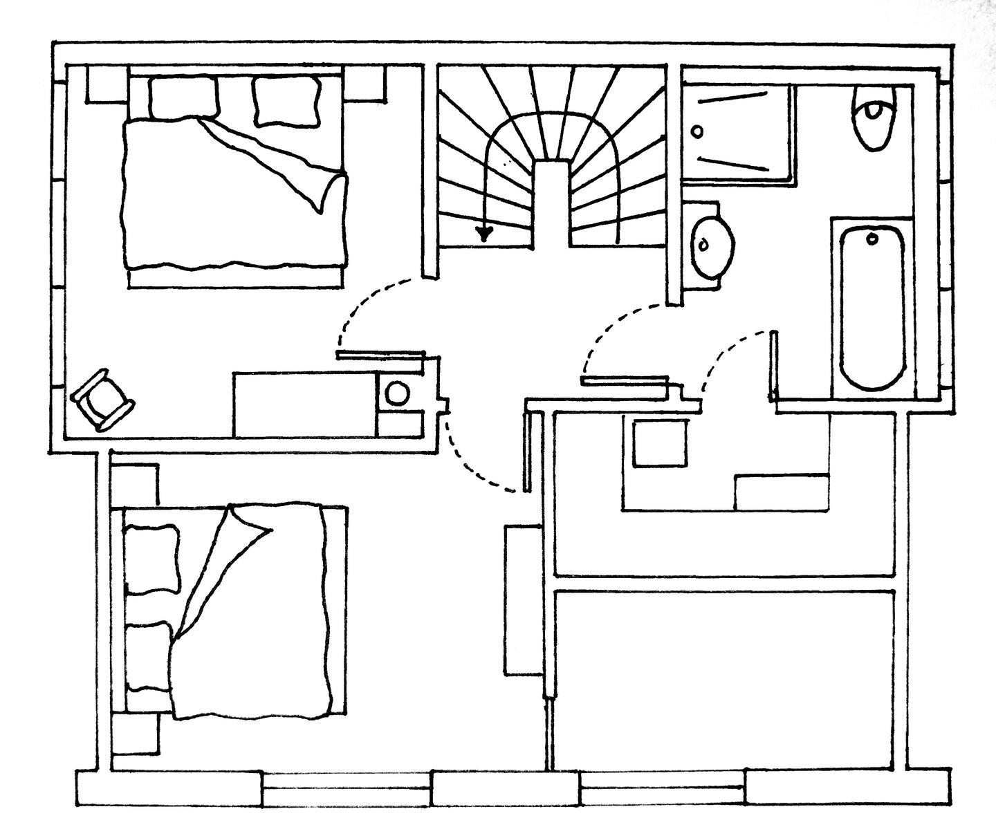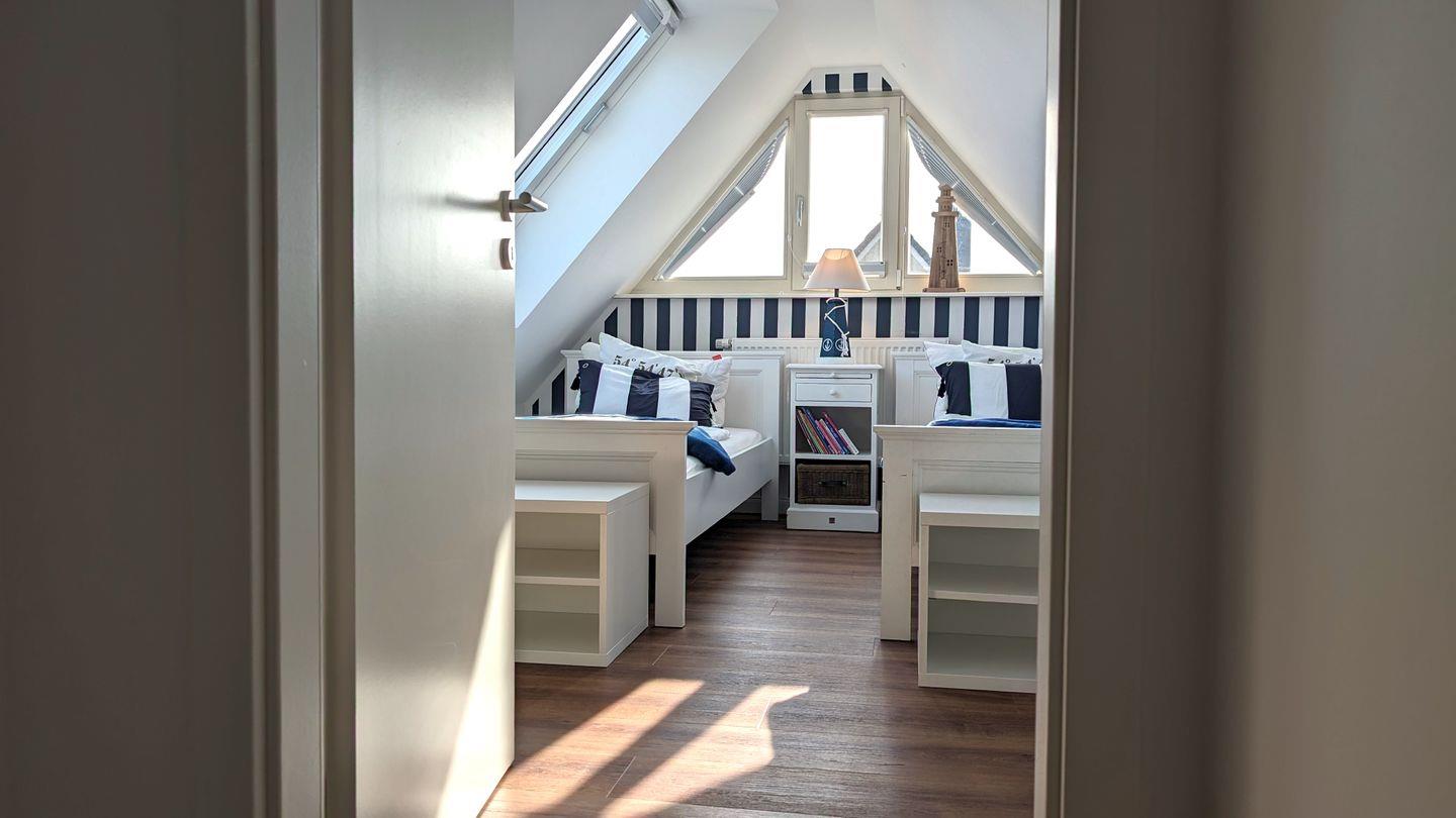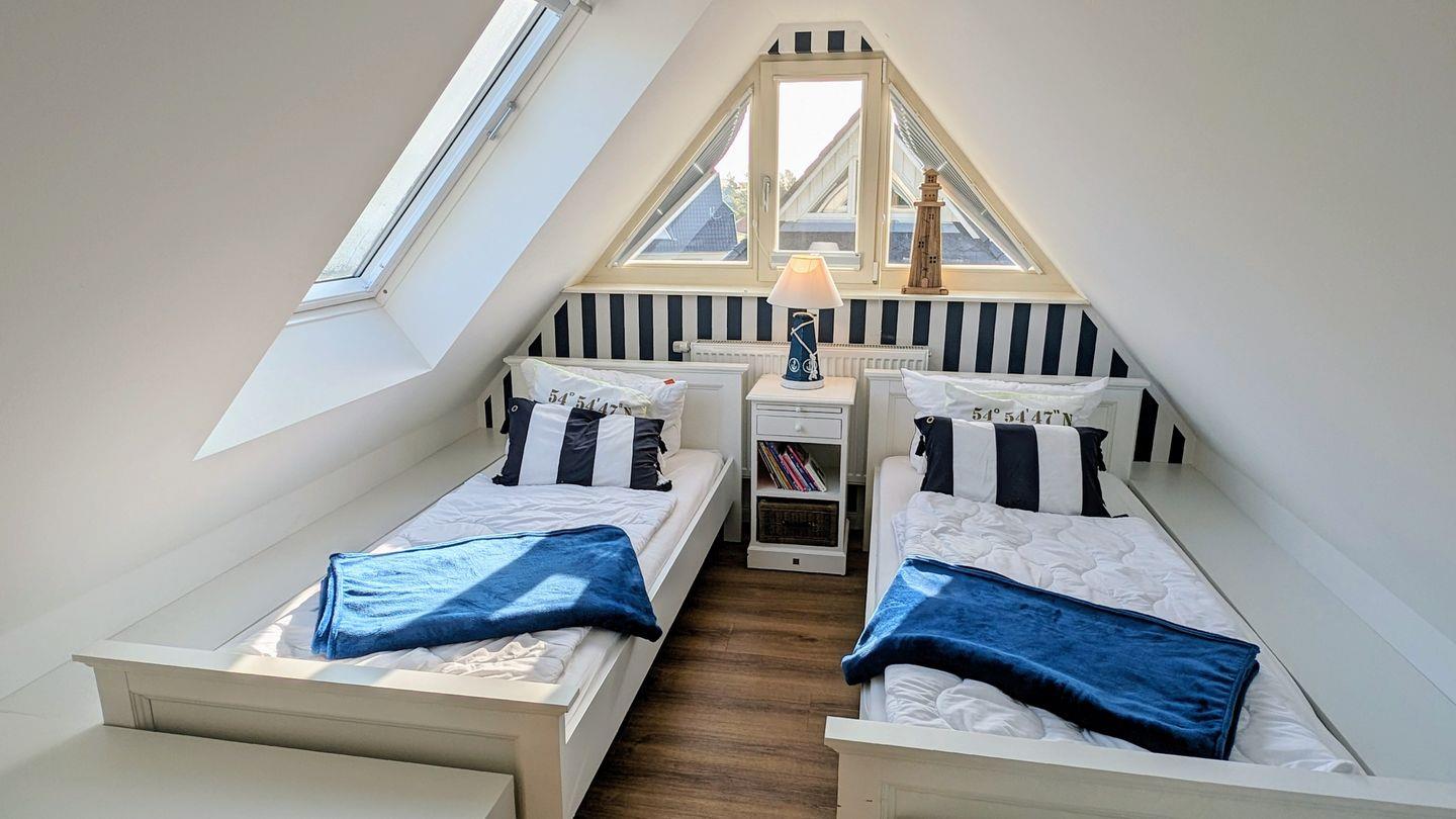 Im Obergeschoss des Ferienhauses befinden sich zwei Schlafzimmer für je