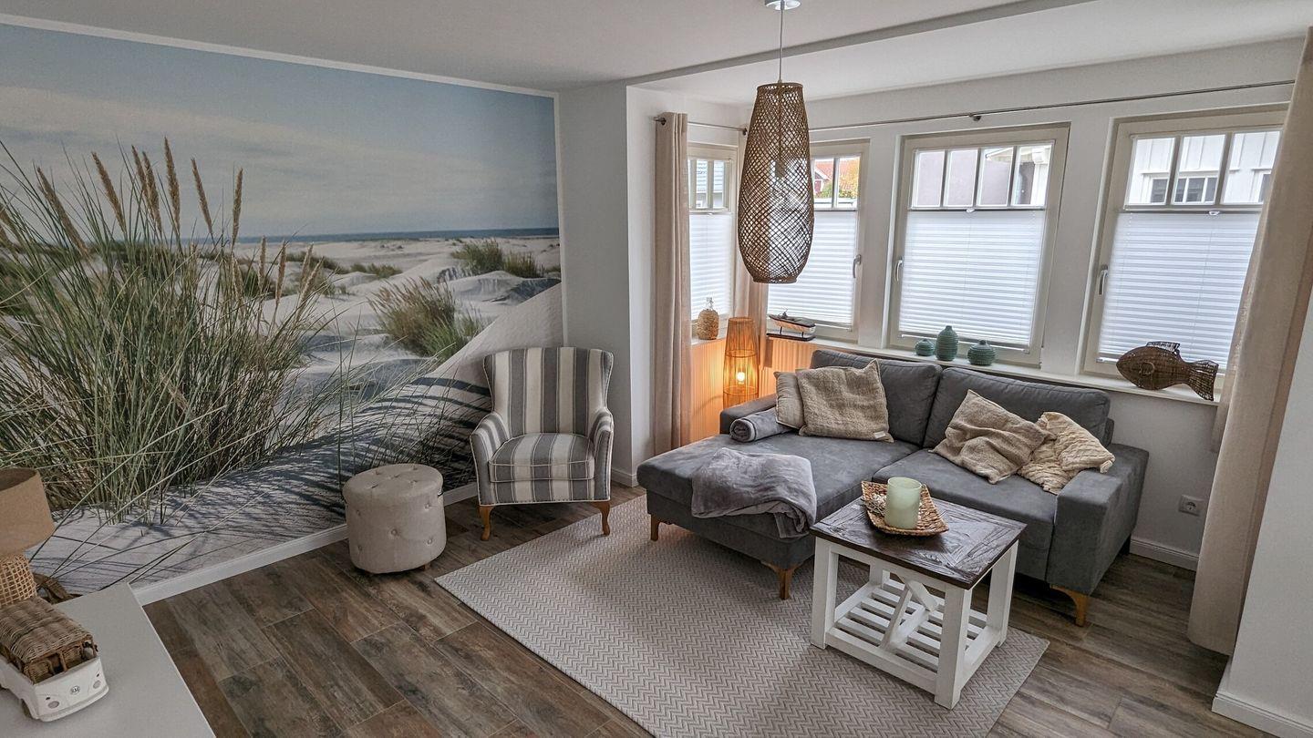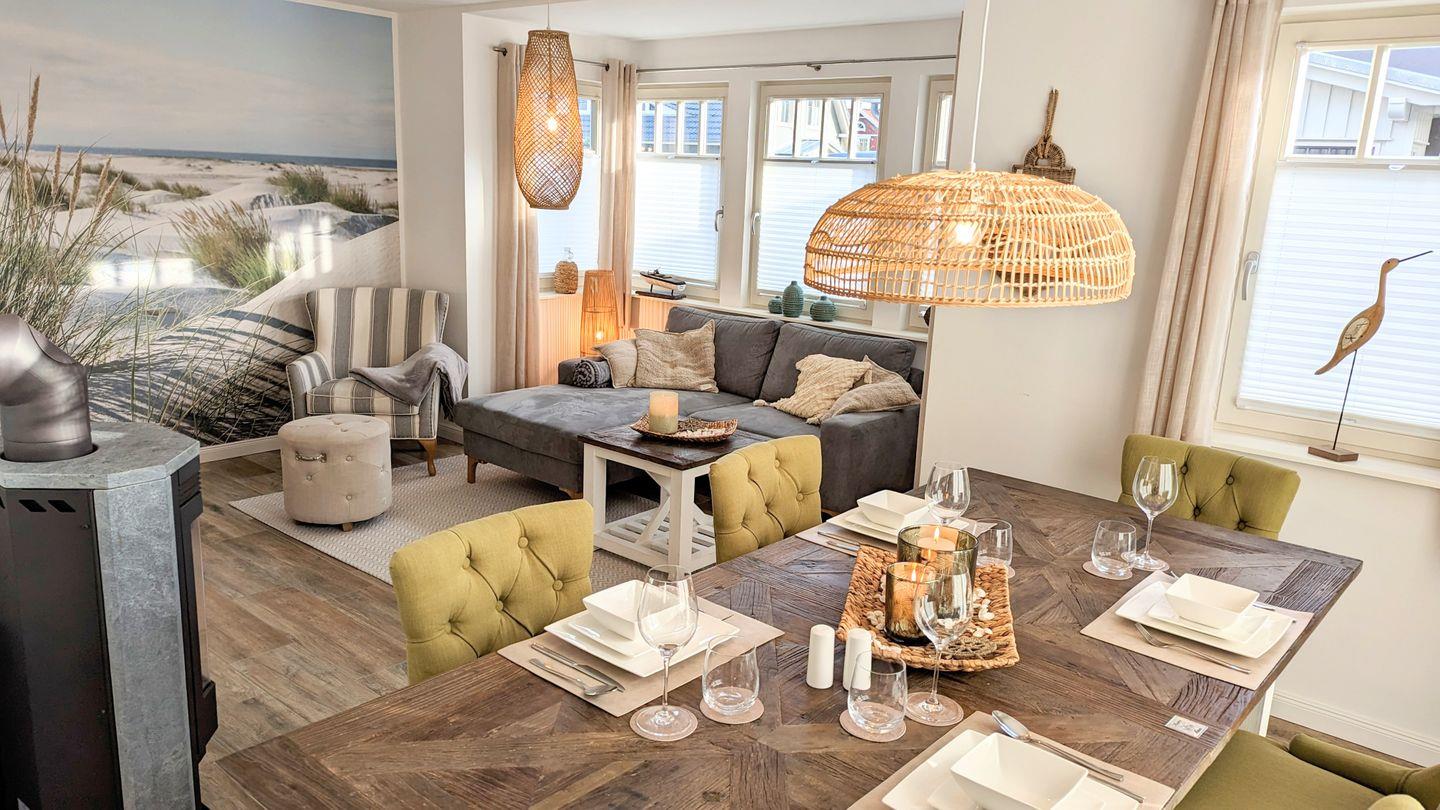befindet sich der lichtdurchflutete und stilvoll eingerichtete Wohn- und