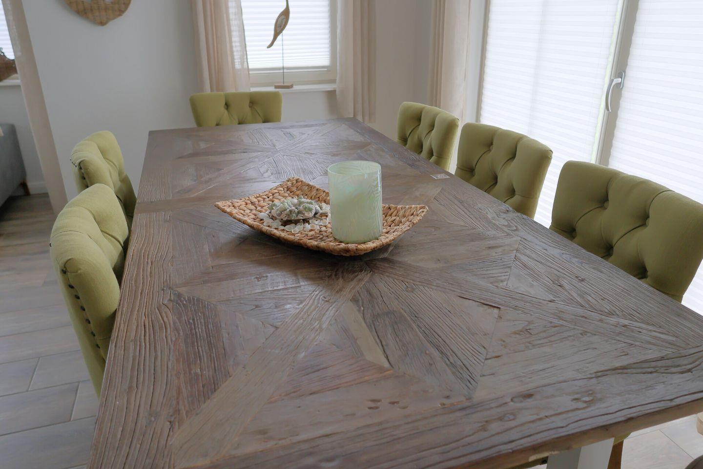 Wünsche offen lässt, lädt der rustikale Esstisch für sechs Personen zu
