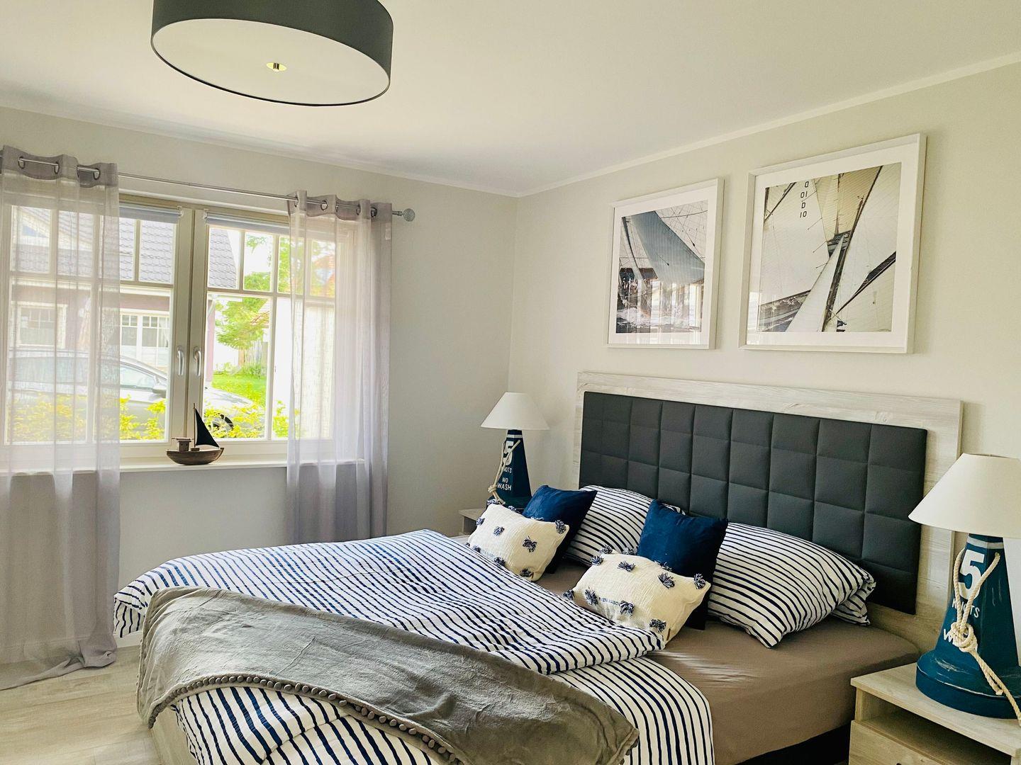 Verdunklungsmöglichkeiten in den Schlafzimmern sind vorhanden.