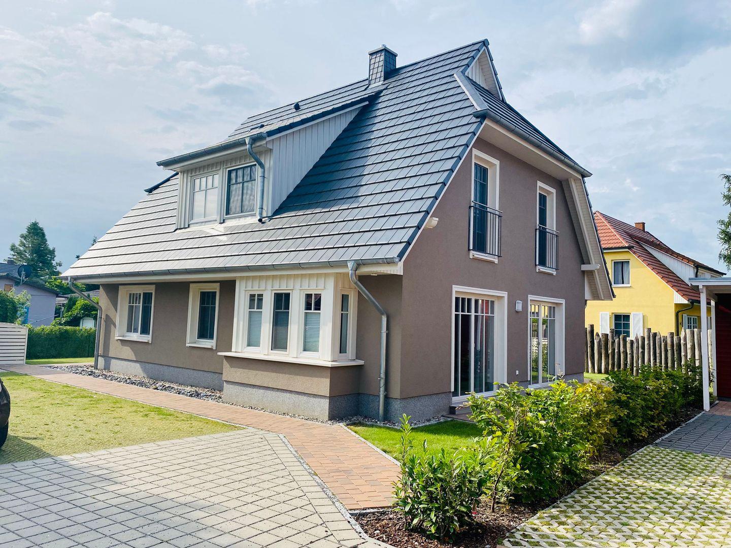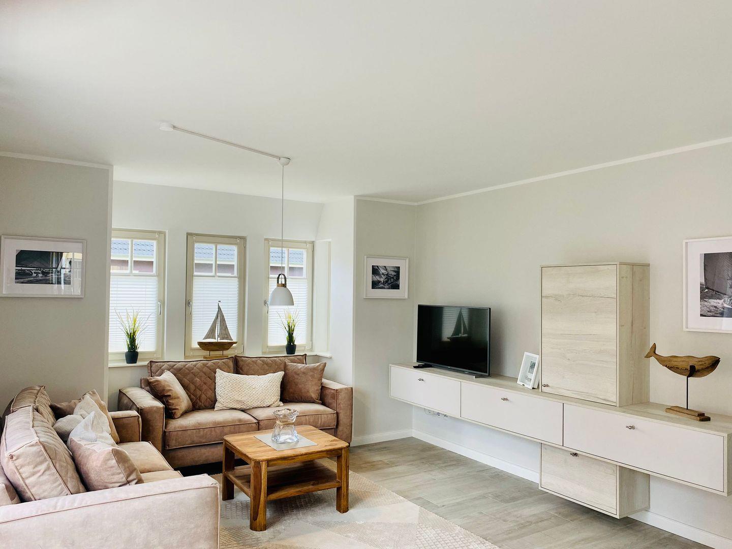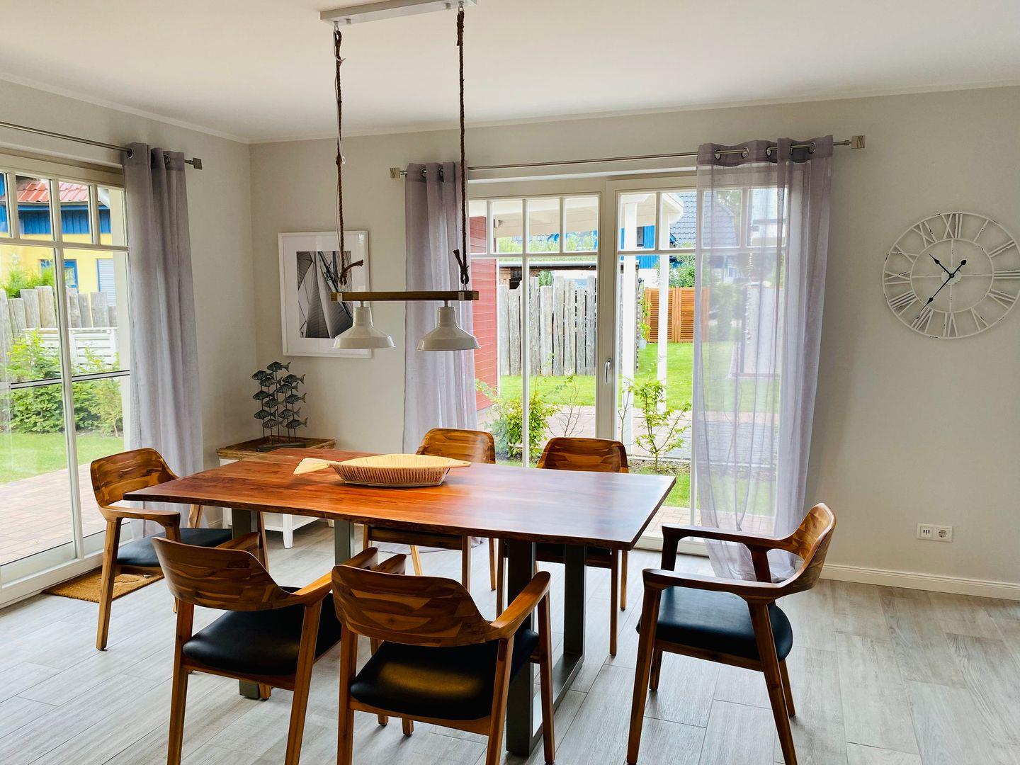 Moderne Luxus-Ferienwohnung mit eigenem Garten und Südterrasse in Zingst, ideal für Familien und Erholungssuchende.