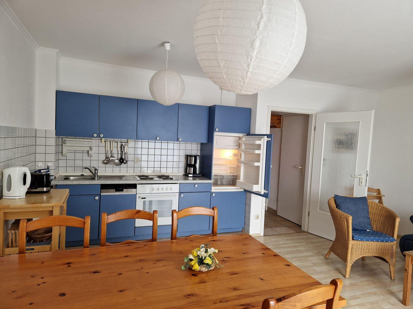Gut 500 m vom bezaubernden Ostseestrand entfernt, erwartet Sie unsere familienfreundlich eingerichtete 3 Zimmer Wohnung. Die Wohnung befindet sich im 1.OG. Herzstück der Wohnung ist der große offene Wohn-, Ess- und Küchenbereich. Die Küche ist voll ausgestattet inklusive Geschirrspüler. Ein Schlafzimmer mit Ehebett und Verdunklungsrollo, ein Schlafzimmer mit Einzelbett ( Außenrollo). Bad mit Dusche/WC. Auf dem Süd-Westbalkon können Sie die untergehende Sonne genießen.