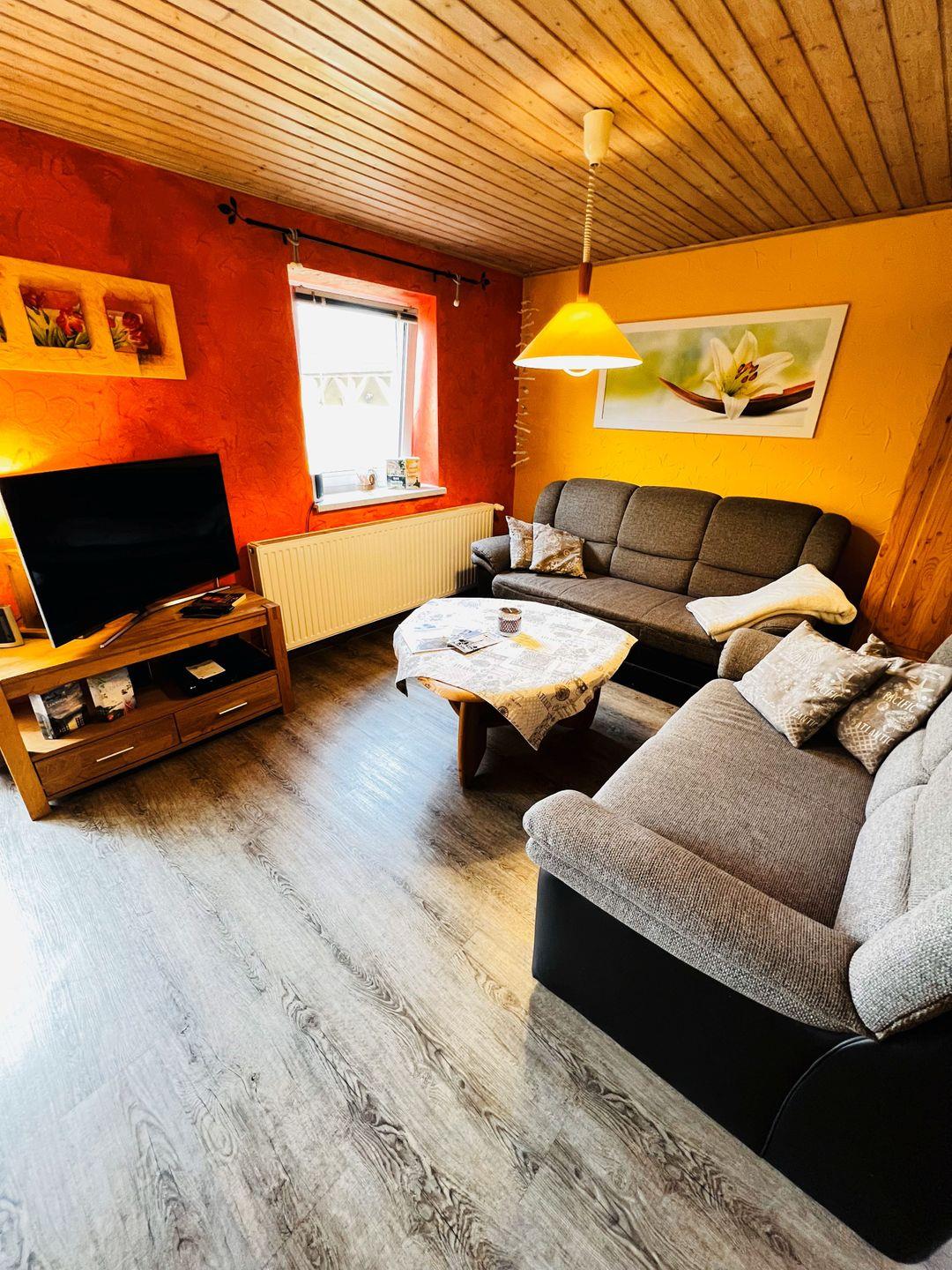 Diese wunderschöne Ferienwohnung sorgt selbst bei schlechtem Wetter für gute Laune und bietet Ihnen den idealen Ort, um zu entspannen, sich zu erholen und neue Kraft zu sammeln. Hier können Sie die Seele baumeln lassen und die Ruhe genießen. Das Haus verfügt zudem über einen PKW-Stellplatz, sodass Sie bequem anreisen können. Auf der großen Sonnenterrasse mit Gartenmöbeln können Sie die warmen Sonnenstrahlen genießen und herrliche Stunden im Freien verbringen. Kommen Sie vorbei und lassen Sie sich verzaubern!