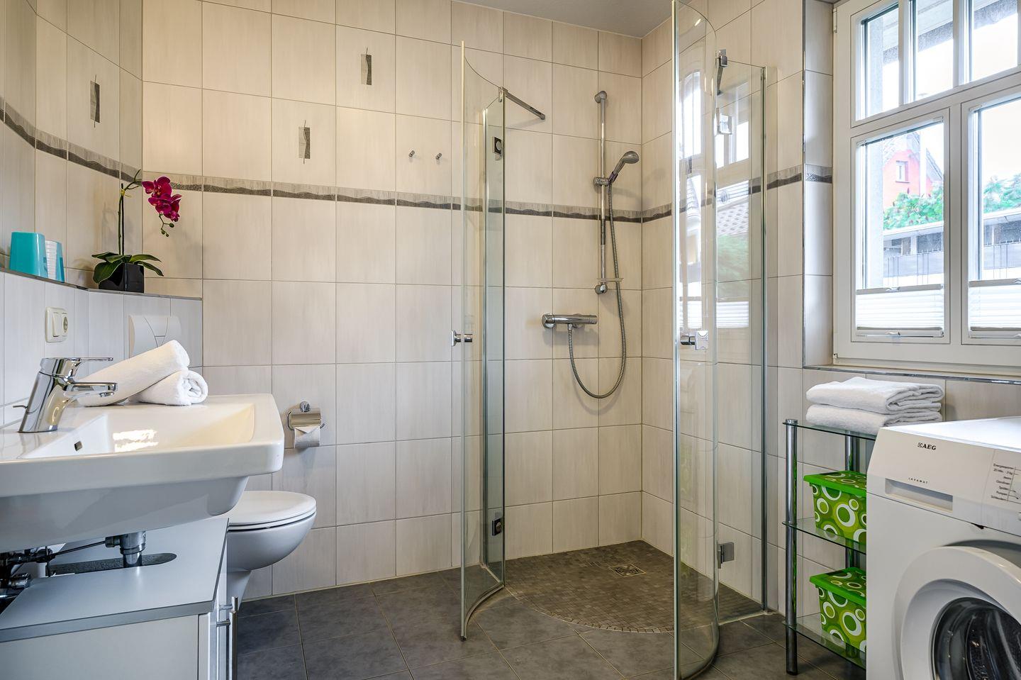 Bad mit Dusche und WC, Föhn, Waschmaschine (ohne Gebühren)