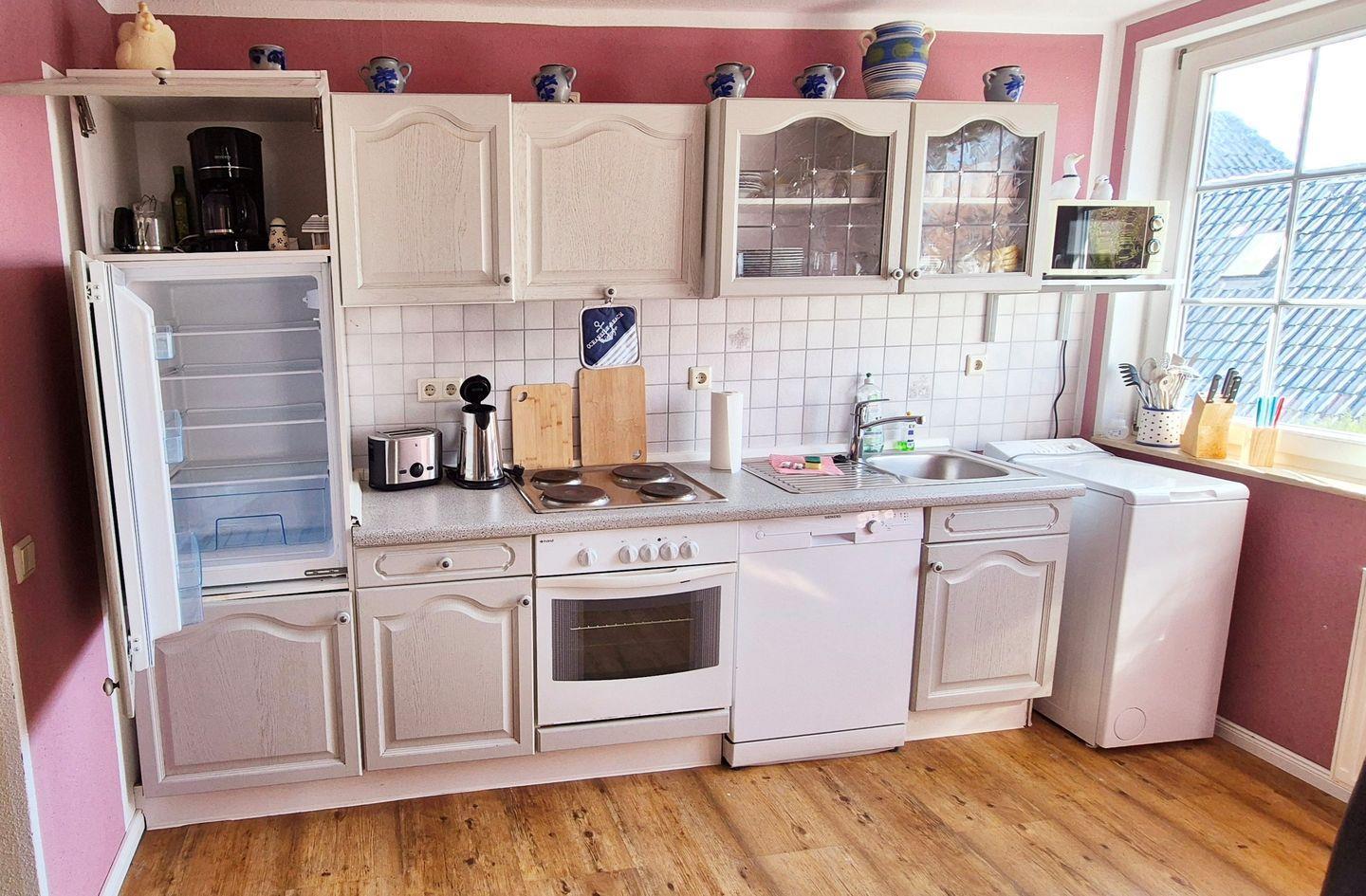 - Der helle Wohnbereich mit offener Küchenzeile bietet alles, was Sie für einen entspannten Aufenthalt brauchen: Kühlschrank, E-Herd, Geschirrspüler, Mikrowelle, Toaster, Kaffeemaschine und Wasserkocher