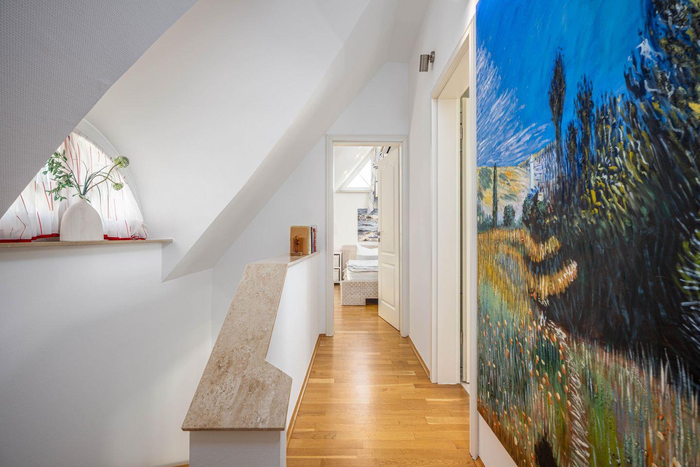 Im Obergeschoss befinden sich 2 große Schlafzimmer mit 2 Klimaanlagen und begehbaren Kleiderschränken, ein geräumiges Bad in Marmor mit Dusche, WC, Bidet und 2 Waschbecken.