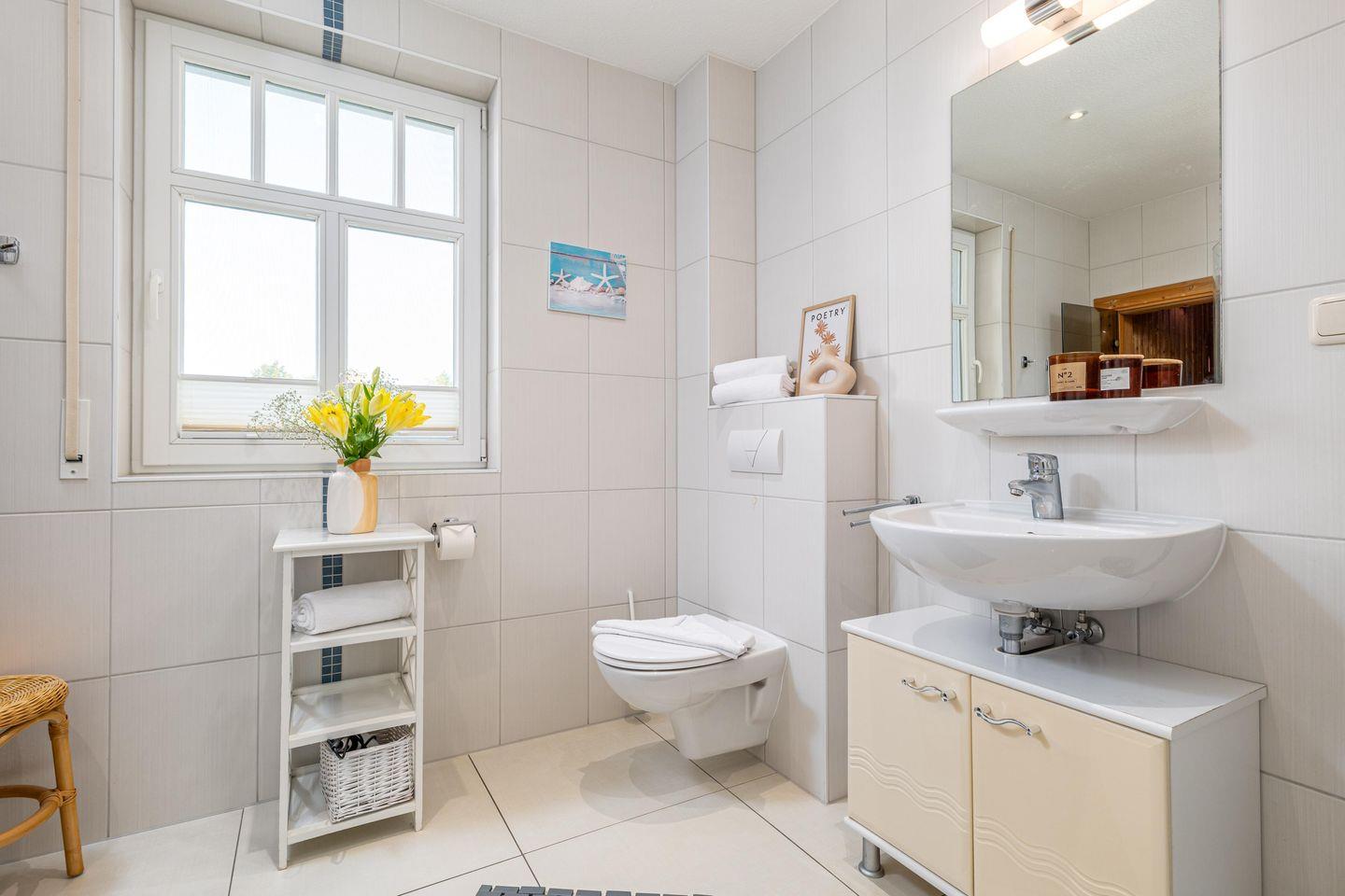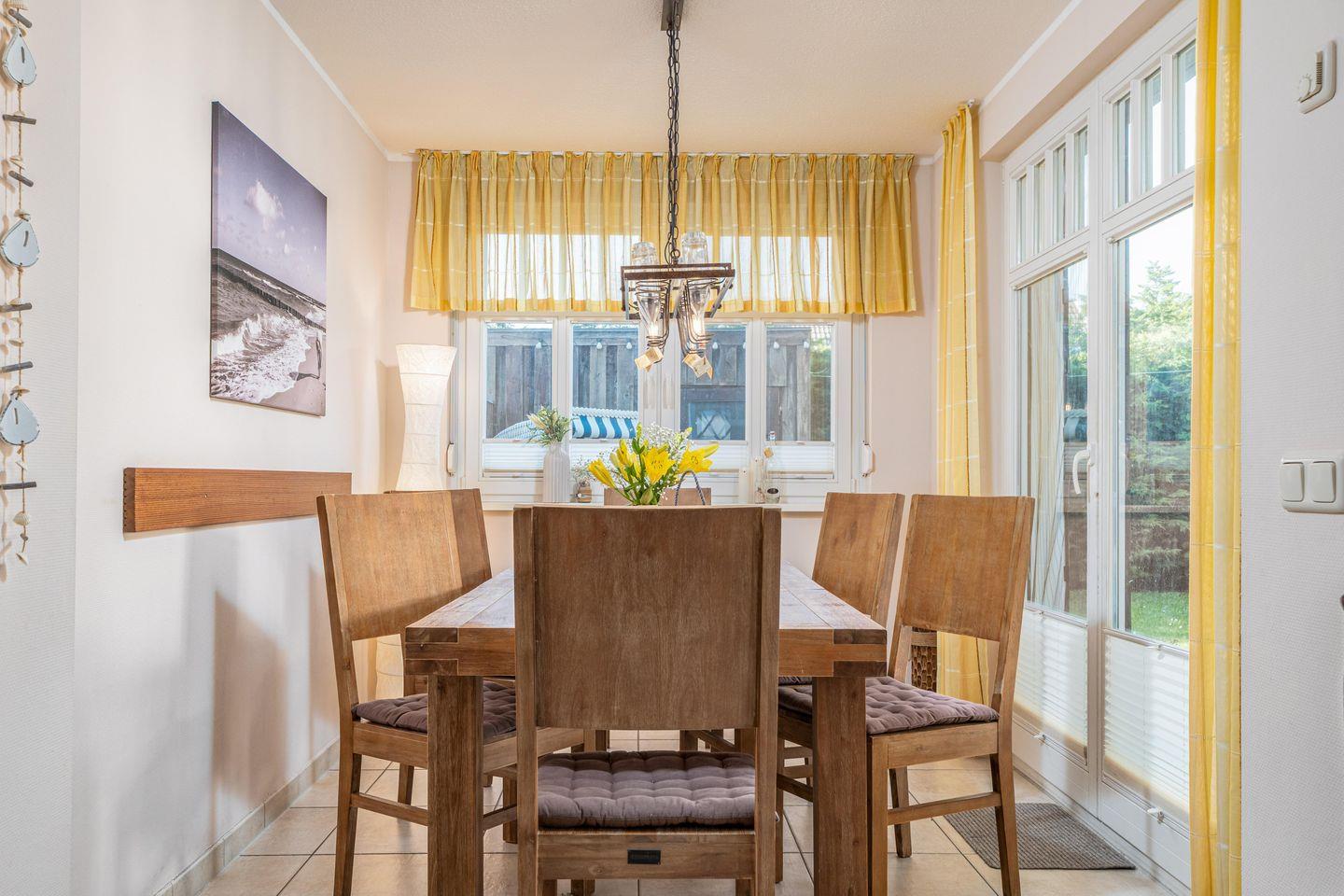 Im Erdgeschoss erwartet Sie als unsere Gäste u.a. ein großzügiger Wohn-/ Essbereich mit bodentiefen Fenstern und direktem Zugang zur Terrasse, ein komfortables Ecksofa, ein Kamin, ein großer Flachbild-TV, ein Essbereich für 6 Personen, eine sehr gut ausgestattete Wohnküche (Geschirrspüler, Mikrowelle, Küchen-Kleingeräte, uvm.), sowie ein Gästebadezimmer mit ebenerdiger Dusche.