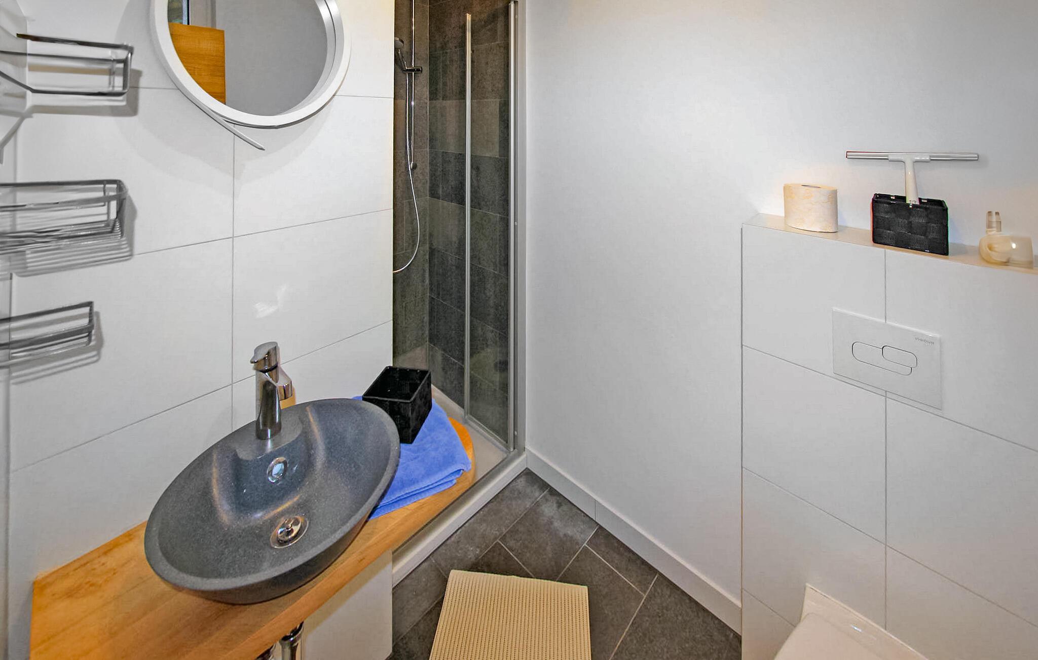 Badezimmer (nr. 1) - WC. Warmes und kaltes Wasser. Dusche